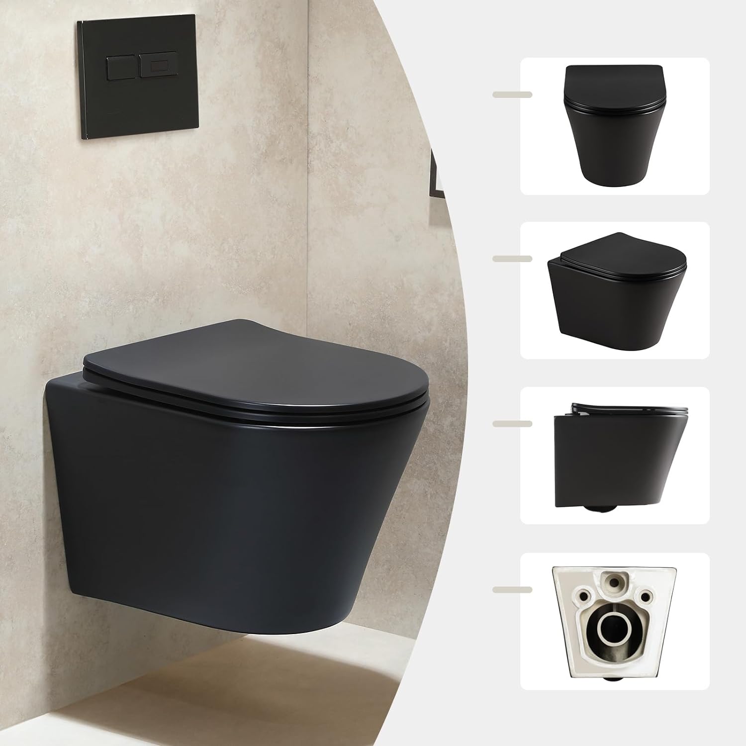 HOROW UG08R-B Wand-WC Mattschwarz mit Softclose-Sitz