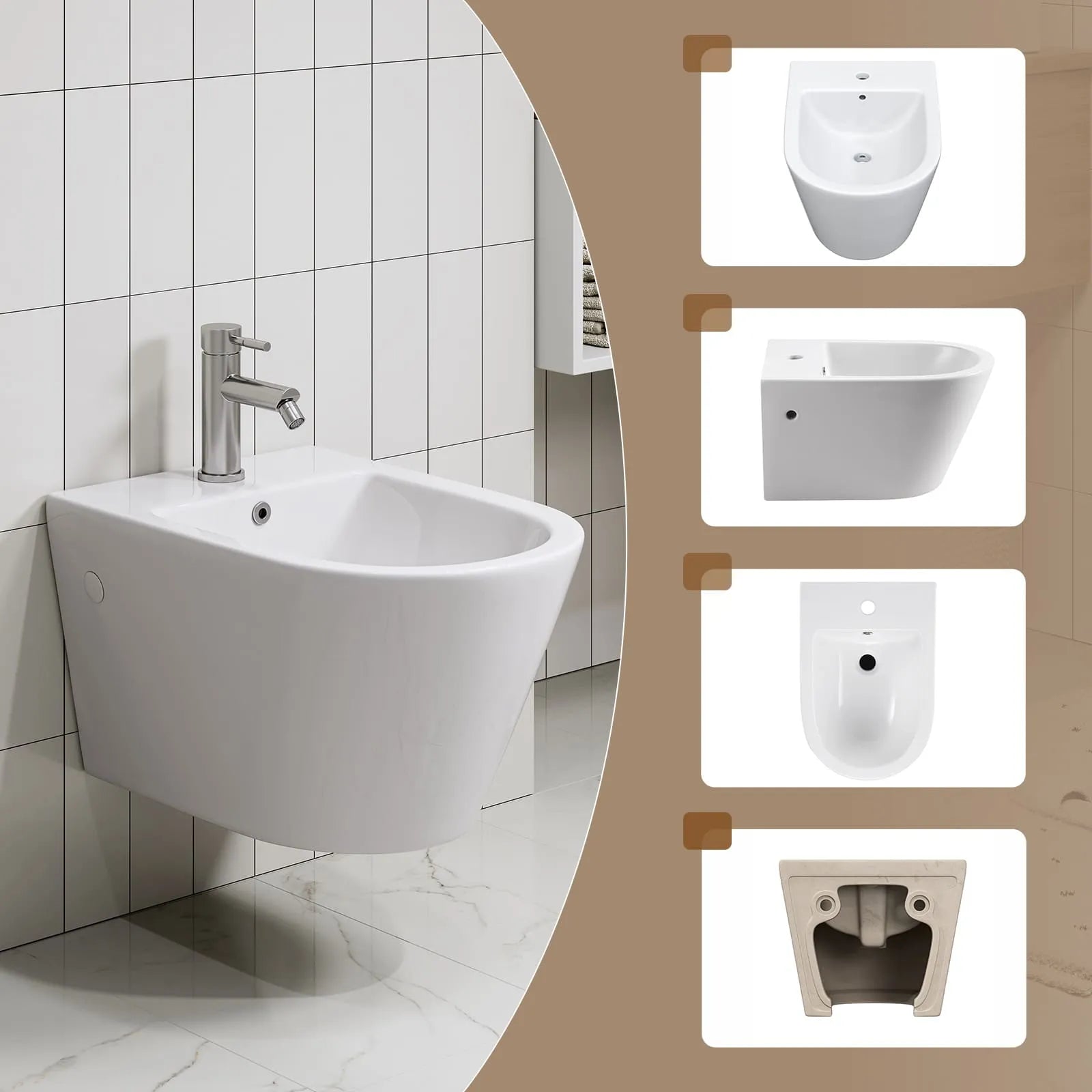 Unser wandmontiertes Bidet besteht aus langlebiger, hochtemperaturbeständiger Keramik in klassischem Weiß. Die glatte, pflegeleichte Oberfläche verleiht Ihrem Badezimmer oder Gäste-WC eine elegante und moderne Note – ideal für anspruchsvolle Badgestaltungen.