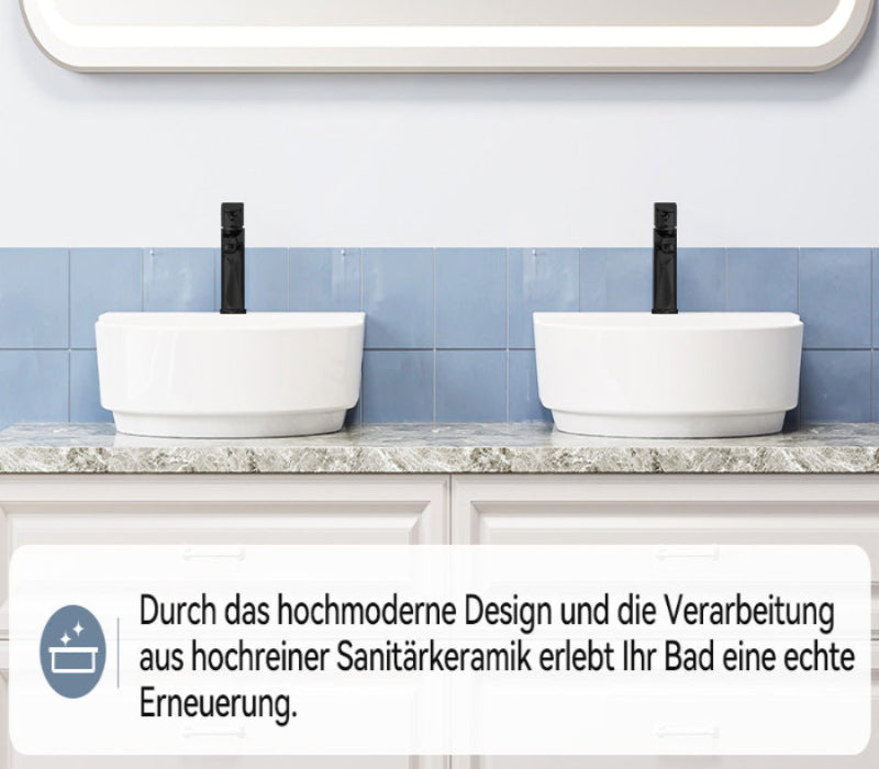 Weiße Keramik mit glatter Beschichtung – leicht zu reinigen, kratzfest und farbbeständig.
