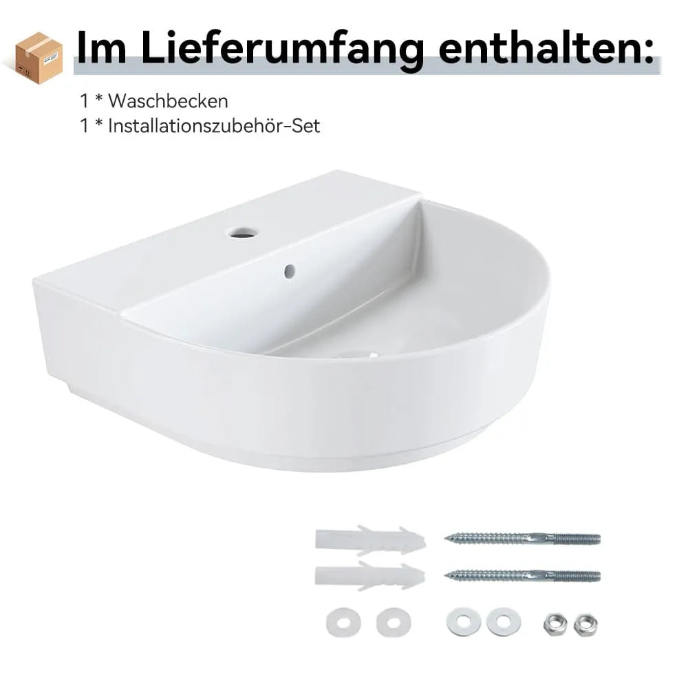 HOROW F08R-R5044W Keramik Waschbecken 50 cm Oval