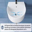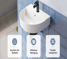 Das hängende Handwaschbecken überzeugt durch seine elegante Form und einfache Reinigung.
