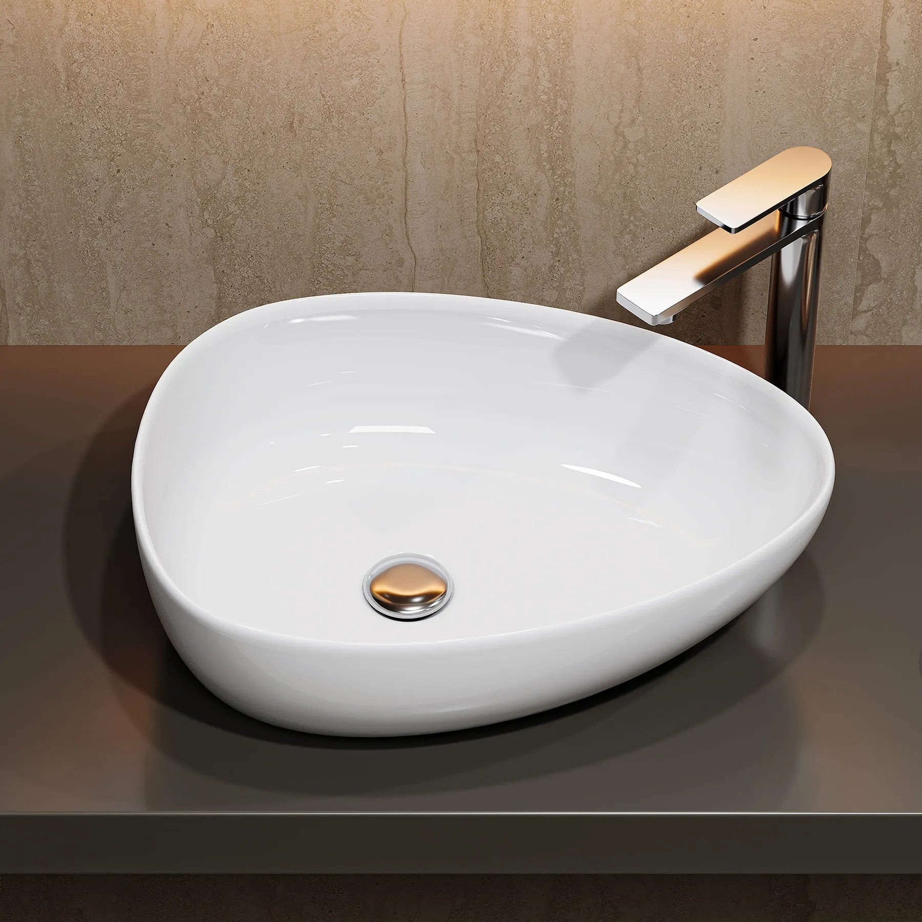 Einfache Installation: Ohne Hahnloch; direkt auf der Arbeitsplatte montierbar. Kein Bohren erforderlich. (Ablaufgarnitur nicht enthalten.)