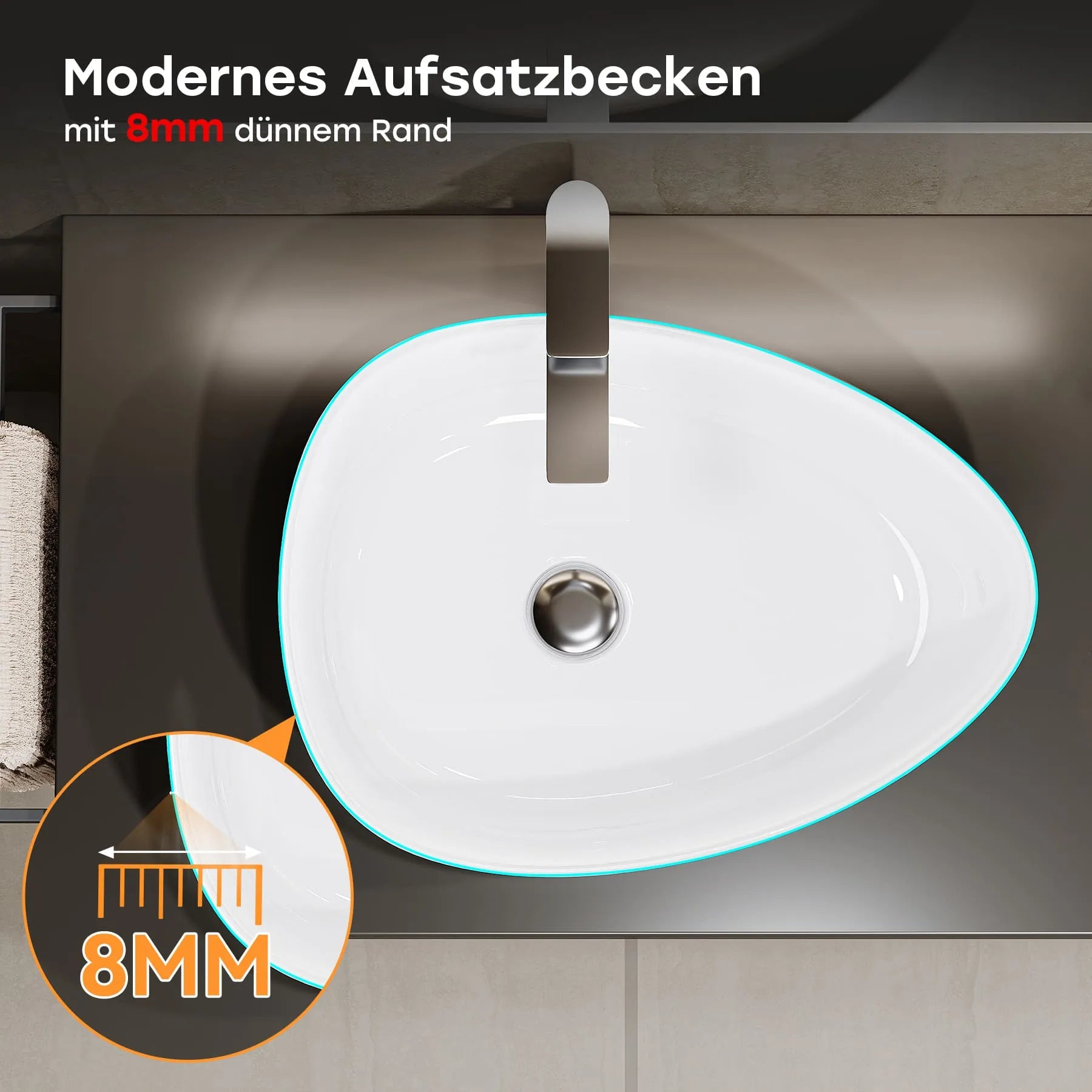 Modernes Design: 8 mm dünner Rand und elegante ovale Form für einen zeitgemäßen, stilvollen Look – ideal für moderne Badezimmer und Gäste-WCs.