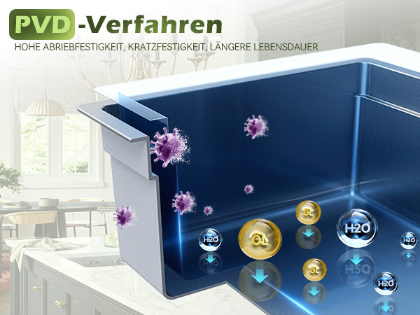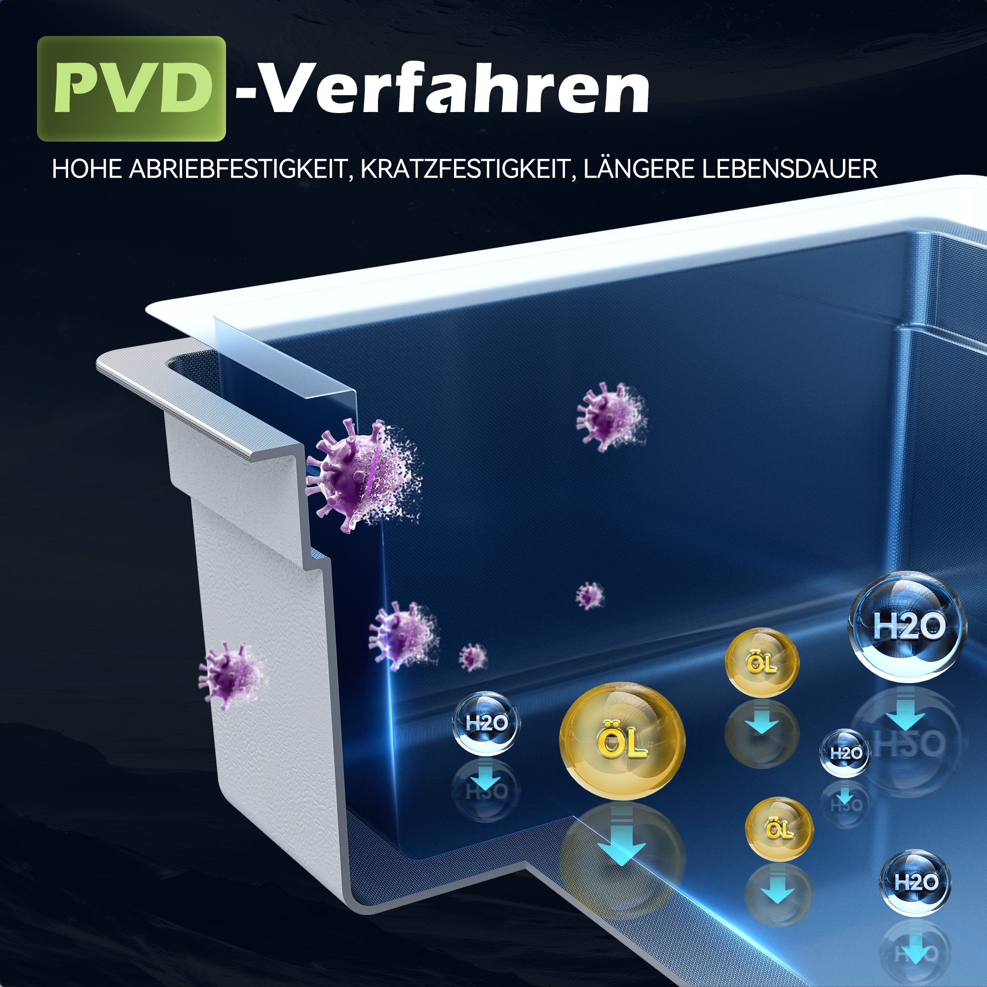 Korrosionsbeständig, fettabweisend und leicht zu reinigen. Die gebürstete Oberfläche mit spezieller Musterprägung ist besonders kratz- und verschleißfest. - Geräusch- & Schimmelschutz:
