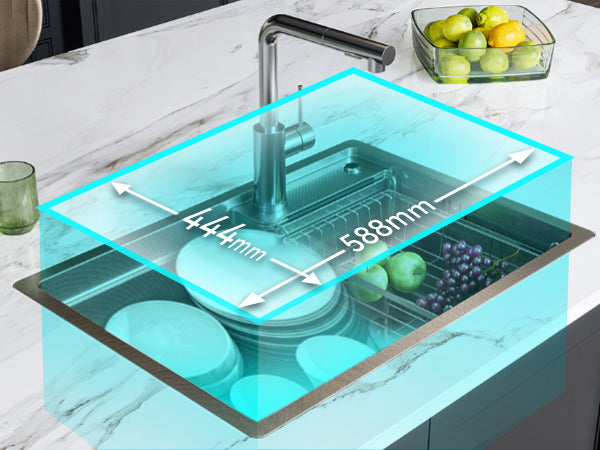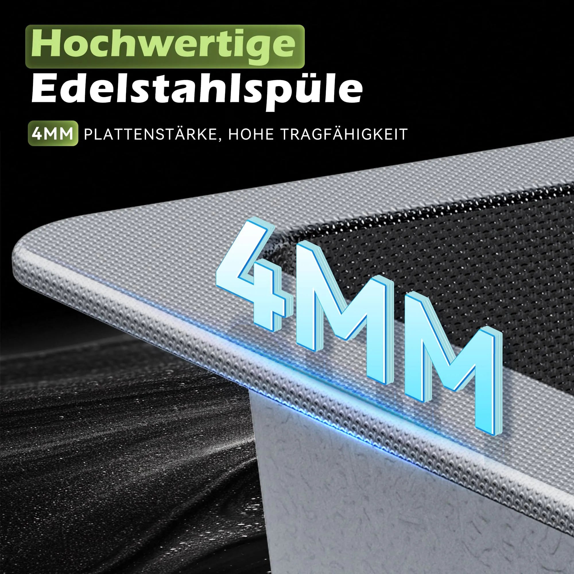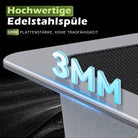 Mit Maßen von 62×44×20 cm und einer Beckentiefe von 19 cm bietet die Spüle viel Platz zum Spülen und Einweichen von großen Pfannen, Töpfen und Backgeschirr. - Hochwertiger 304-Edelstahl: