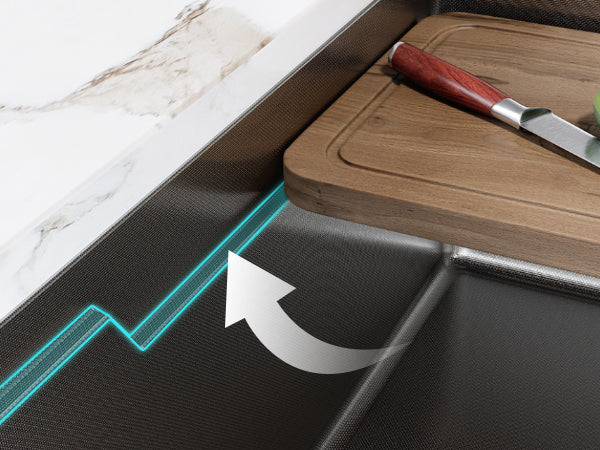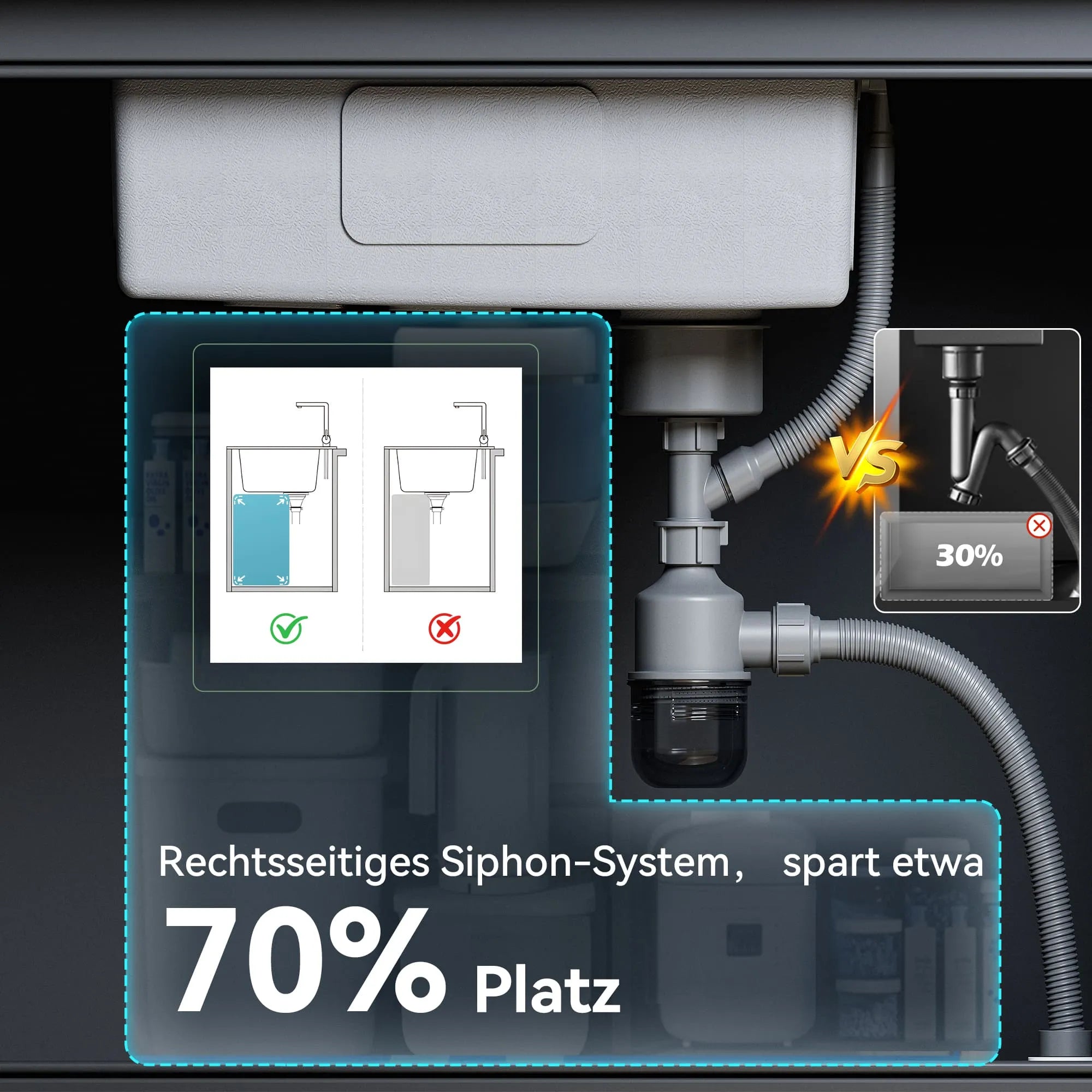 Unterseite mit verdickter Anti-Kondensationsschicht und EVA-Schalldämmung – reduziert Kondenswasser und dämpft effektiv das Geräusch fließenden Wassers. - Reinigungsfreundliches R15-Design: