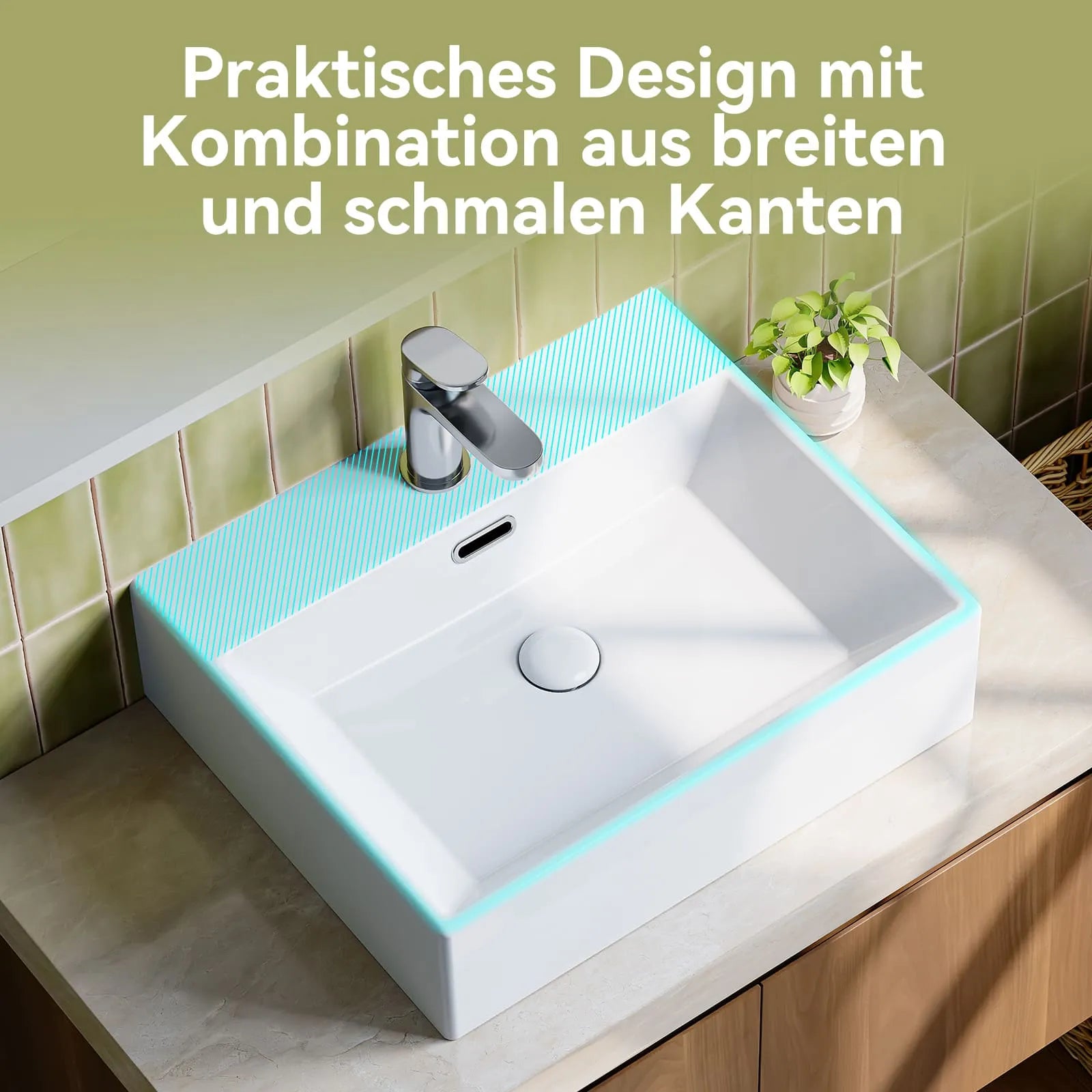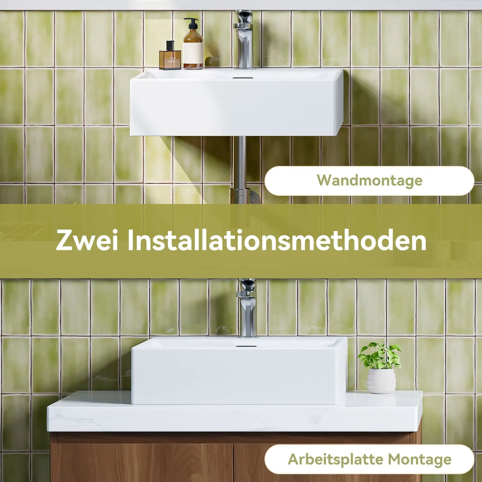 Wählbar als Hängewaschbecken an der Wand oder Aufsatzwaschbecken auf Tisch – passt sich Ihren Bedürfnissen an.