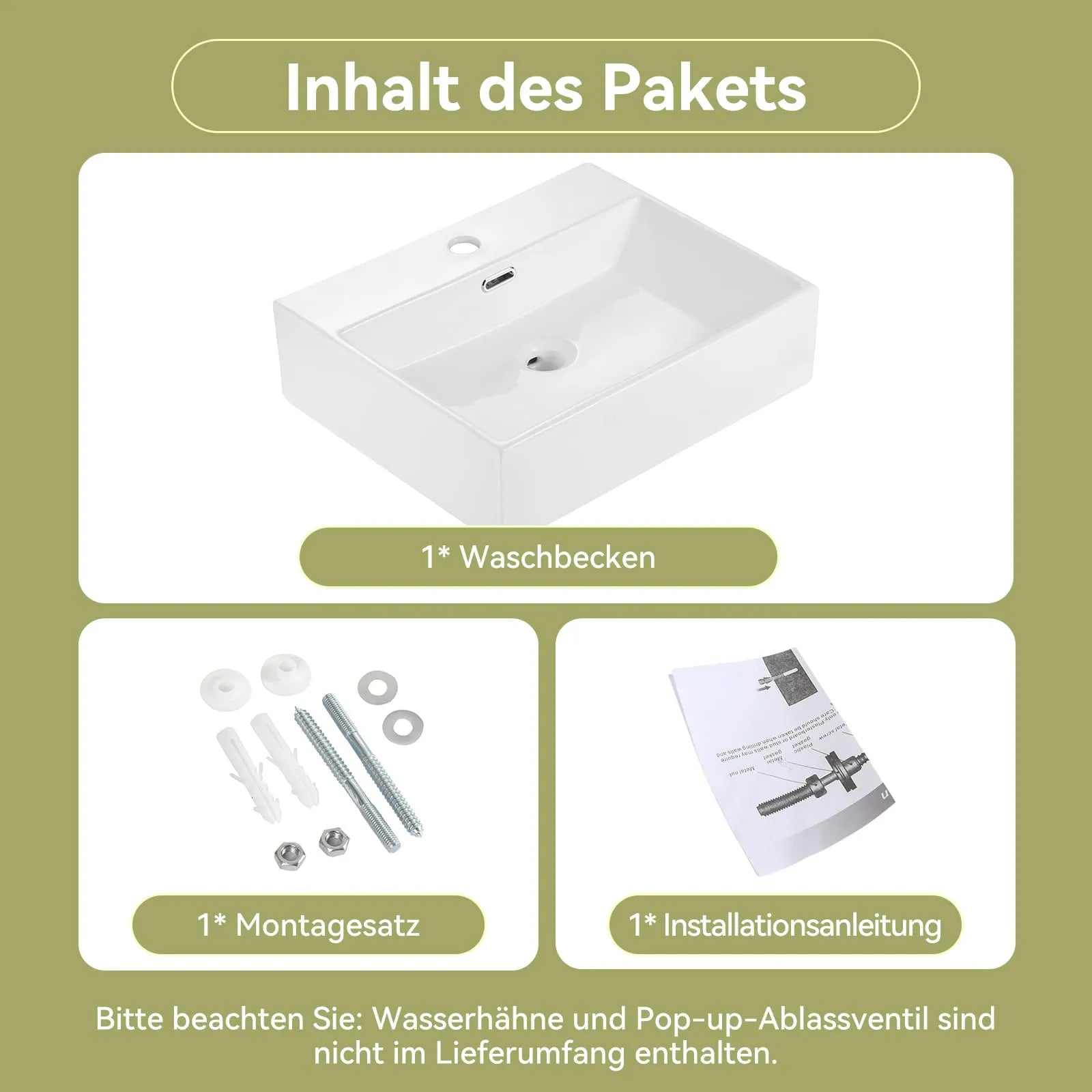 Weißes Keramik-Waschbecken (50,5 x 42 x 14 cm) mit zeitlosem, eckigem Stil – ideal für jedes Gäste-WC oder Bad.