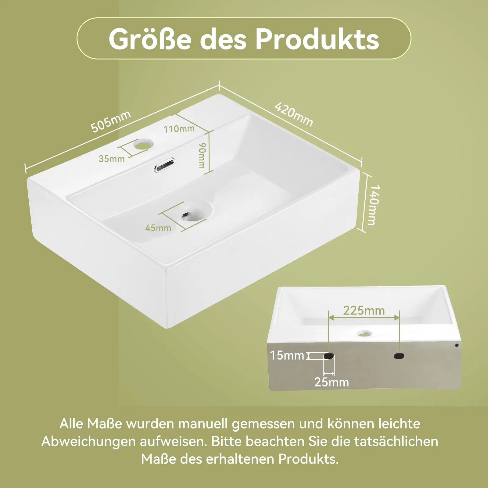 HOROW UV5042W Eckiges Keramik-Waschbecken Weiß 50,5 cm