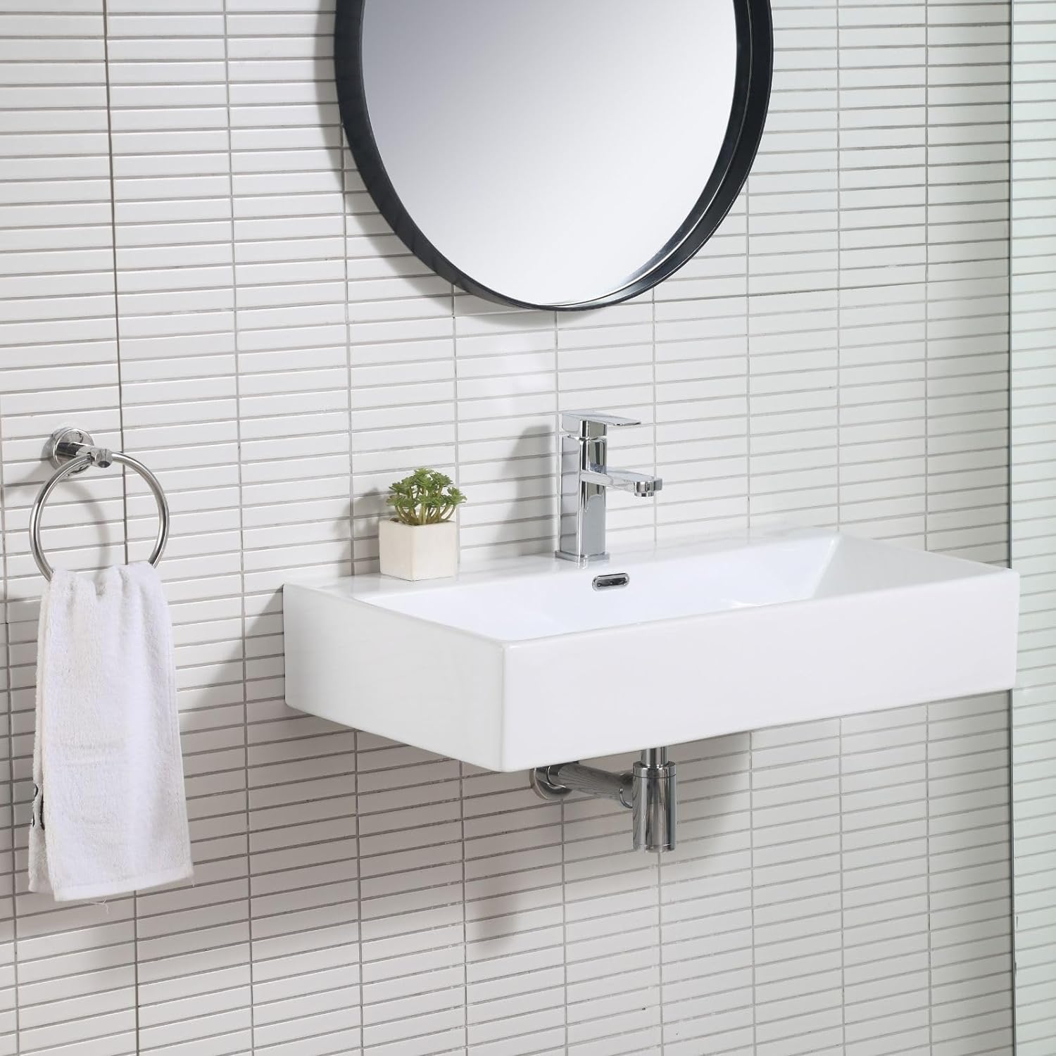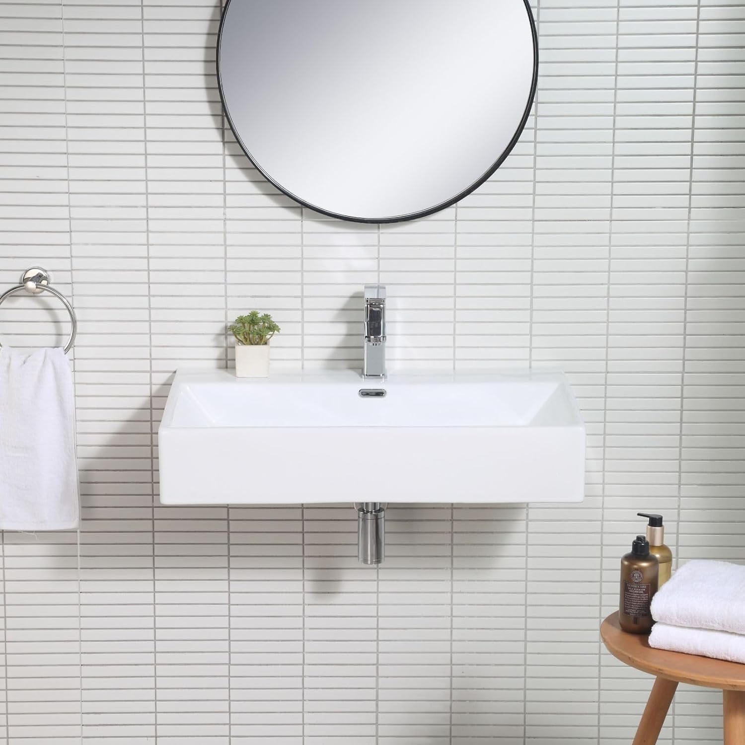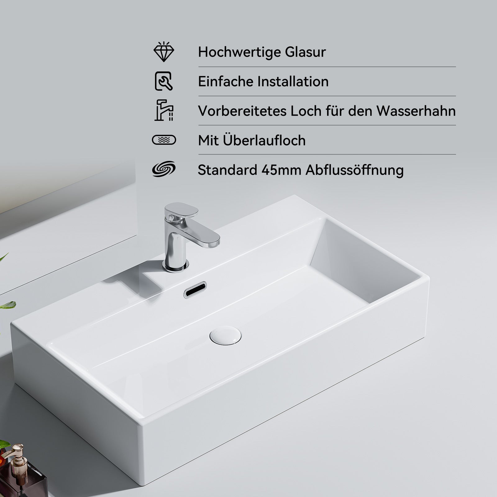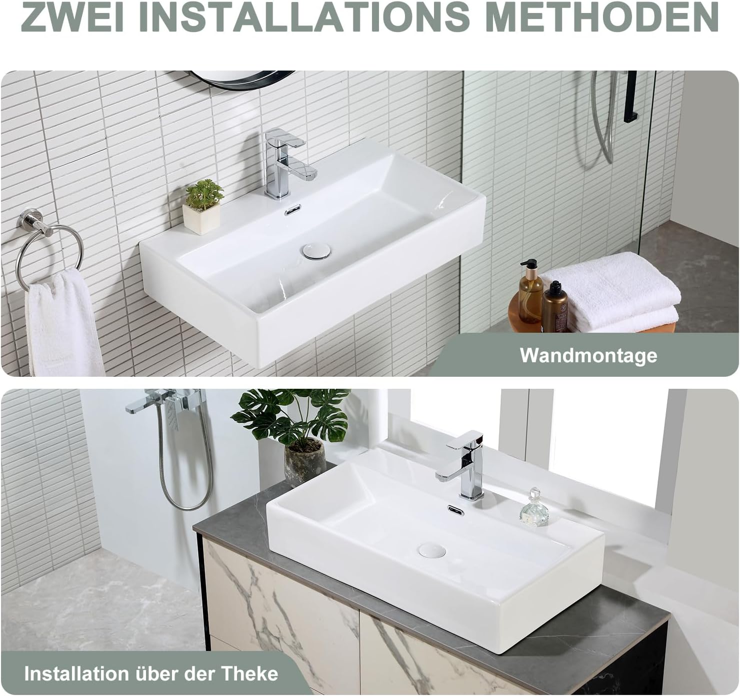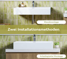 Wahlweise Wand- oder Aufsatzmontage möglich. Wandbefestigung mit Schrauben im Lieferumfang enthalten.