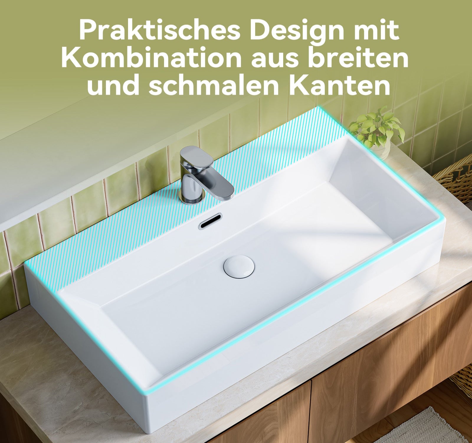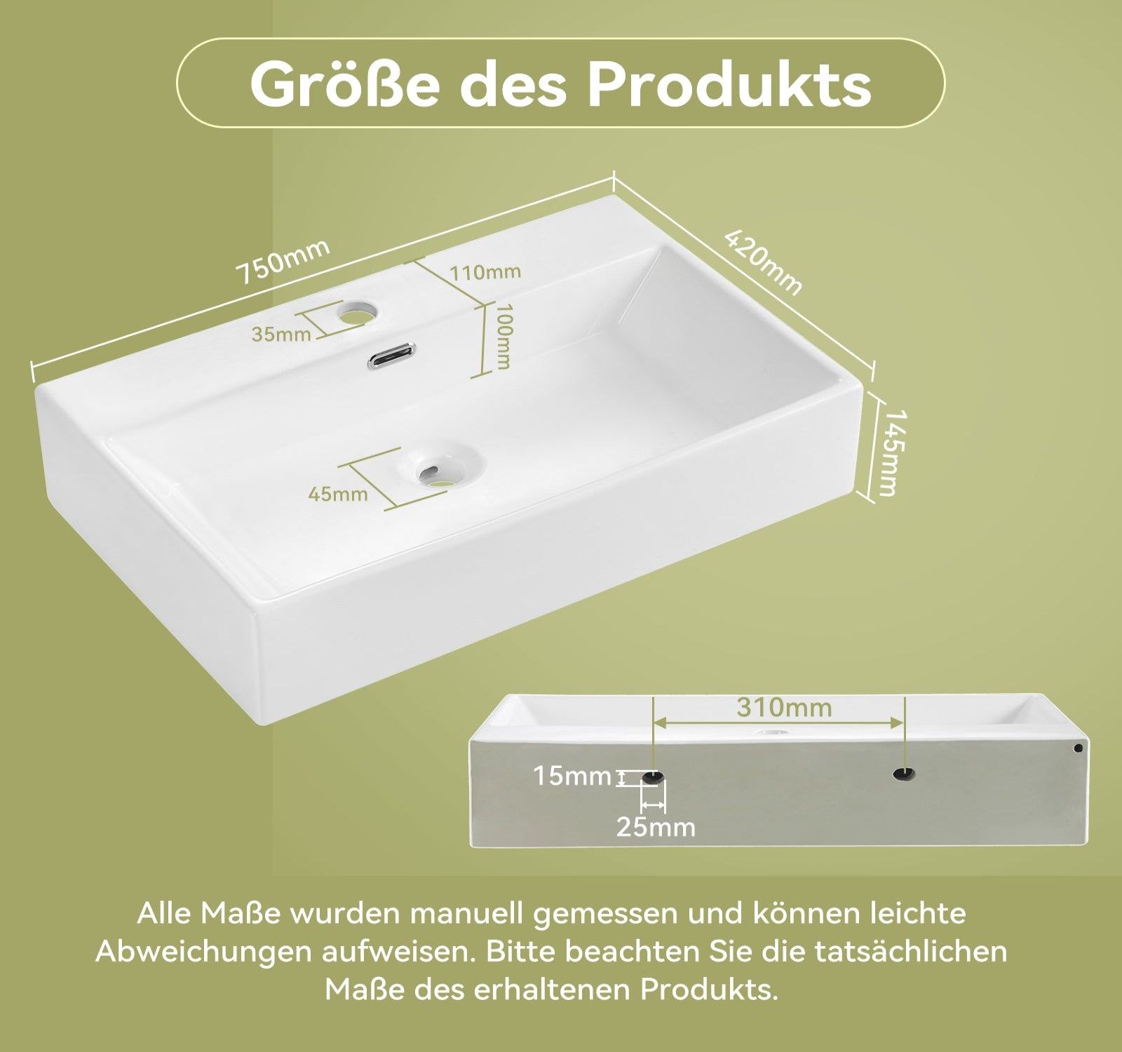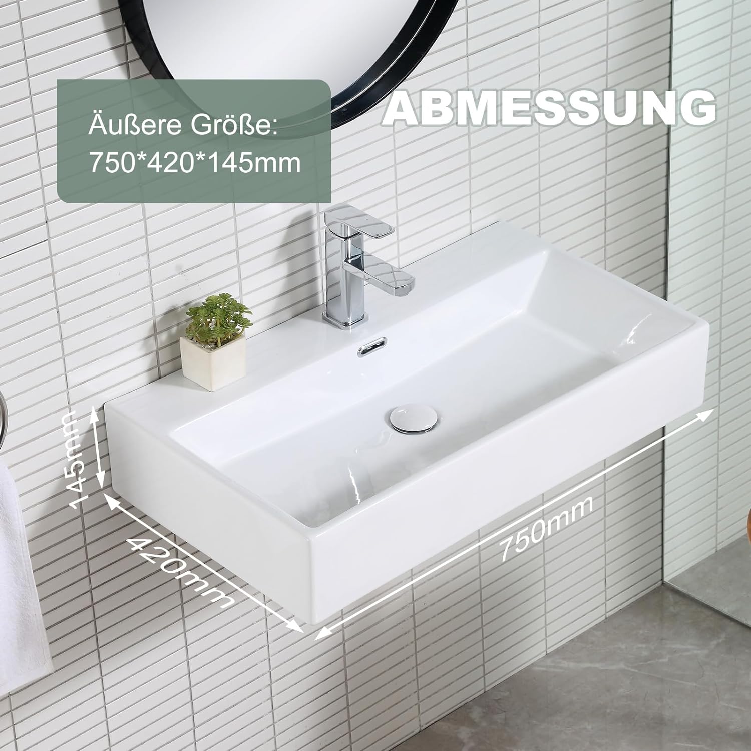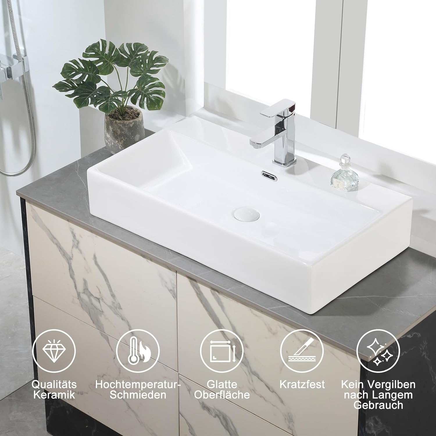 HOROW UV7542W Waschbecken 75 x 42 x 14 cm