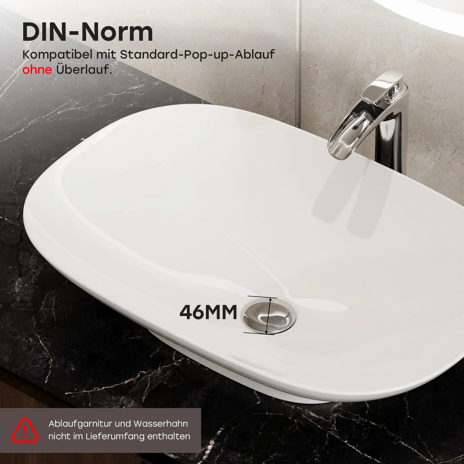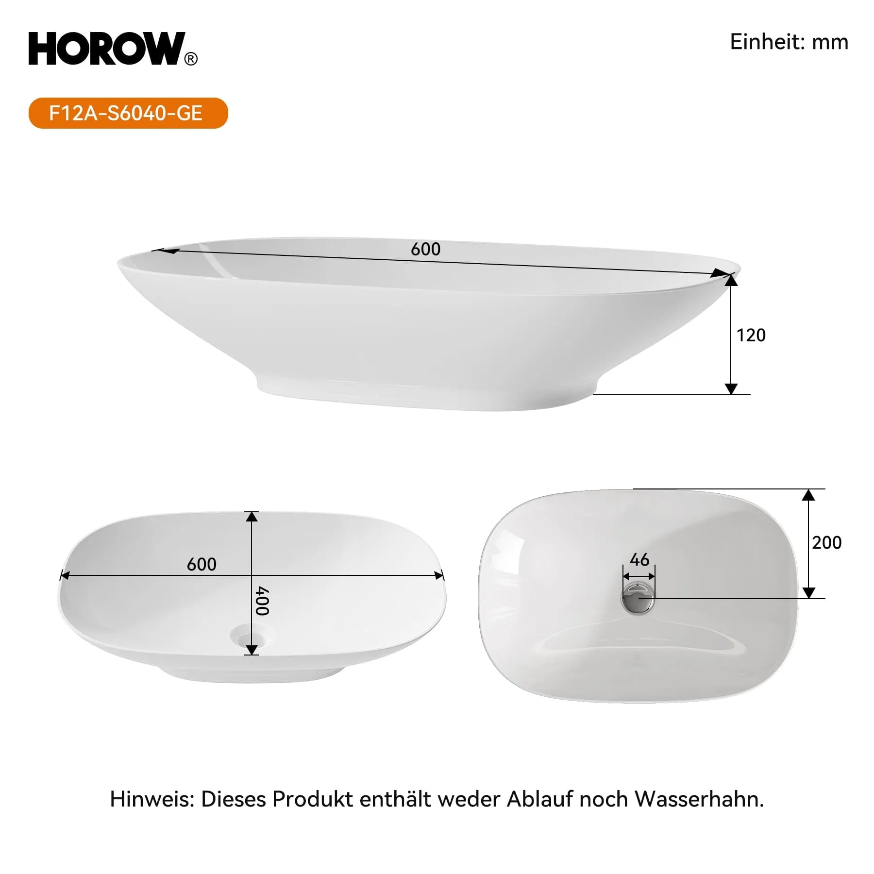 HOROW F12A-S6040 Aufsatzwaschbecken, 60×40 cm, Weiß, Dünnrand, Nano-Beschichtung