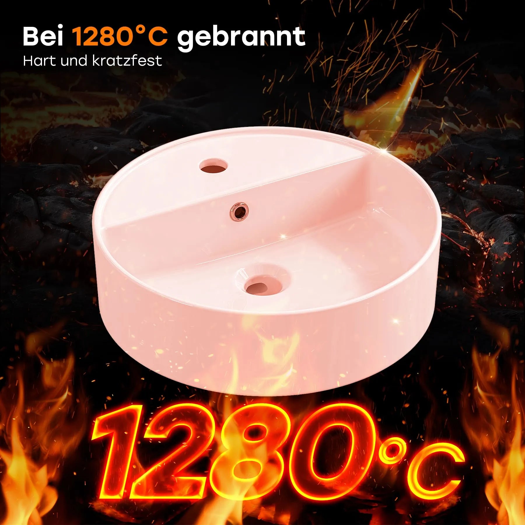 HOROW F12A-S5636 Aufsatzwaschbecken, Hahnloch & Überlauf, 28 cm Lochabstand