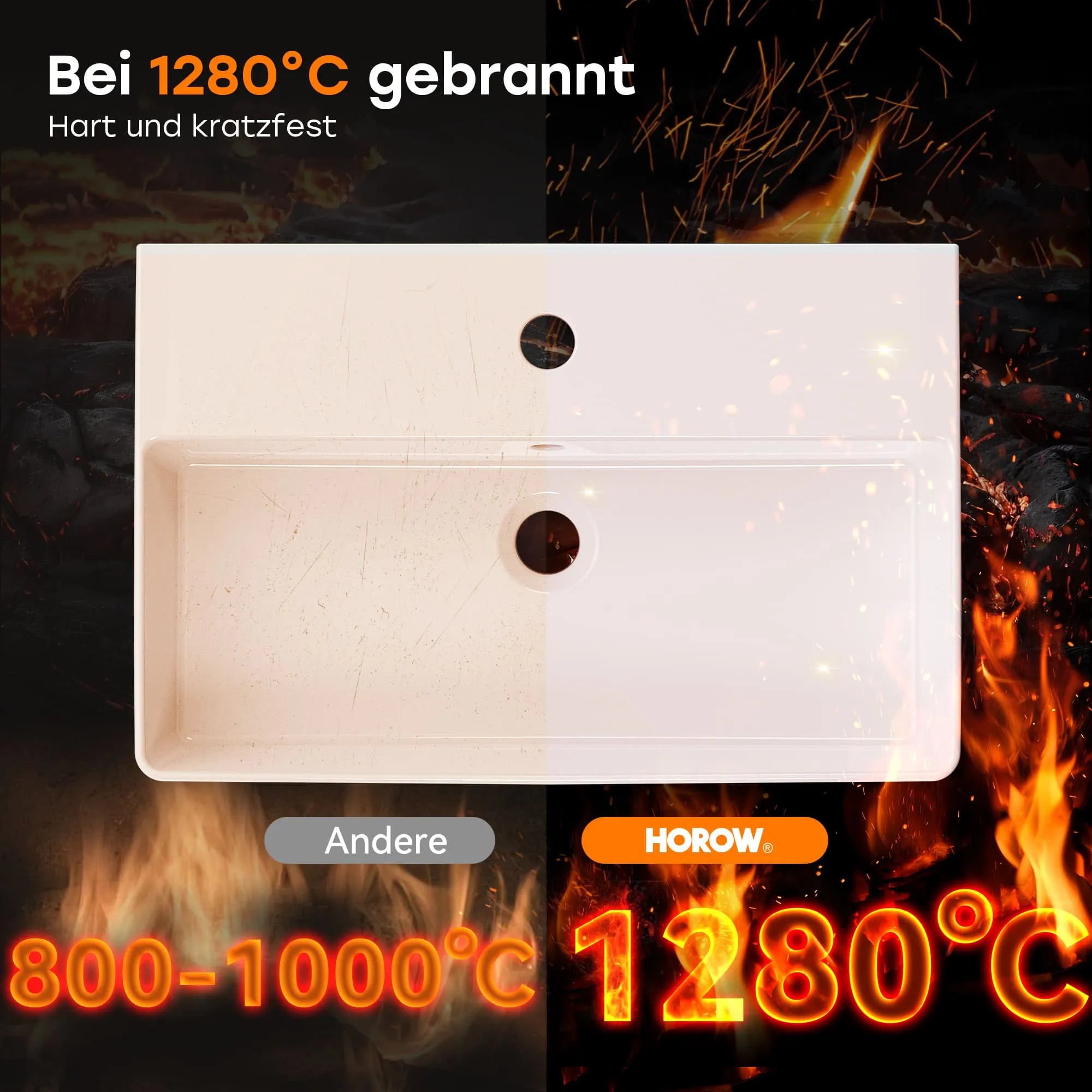 HOROW F08R-S4842W Waschbecken aus Keramik 48×42 cm