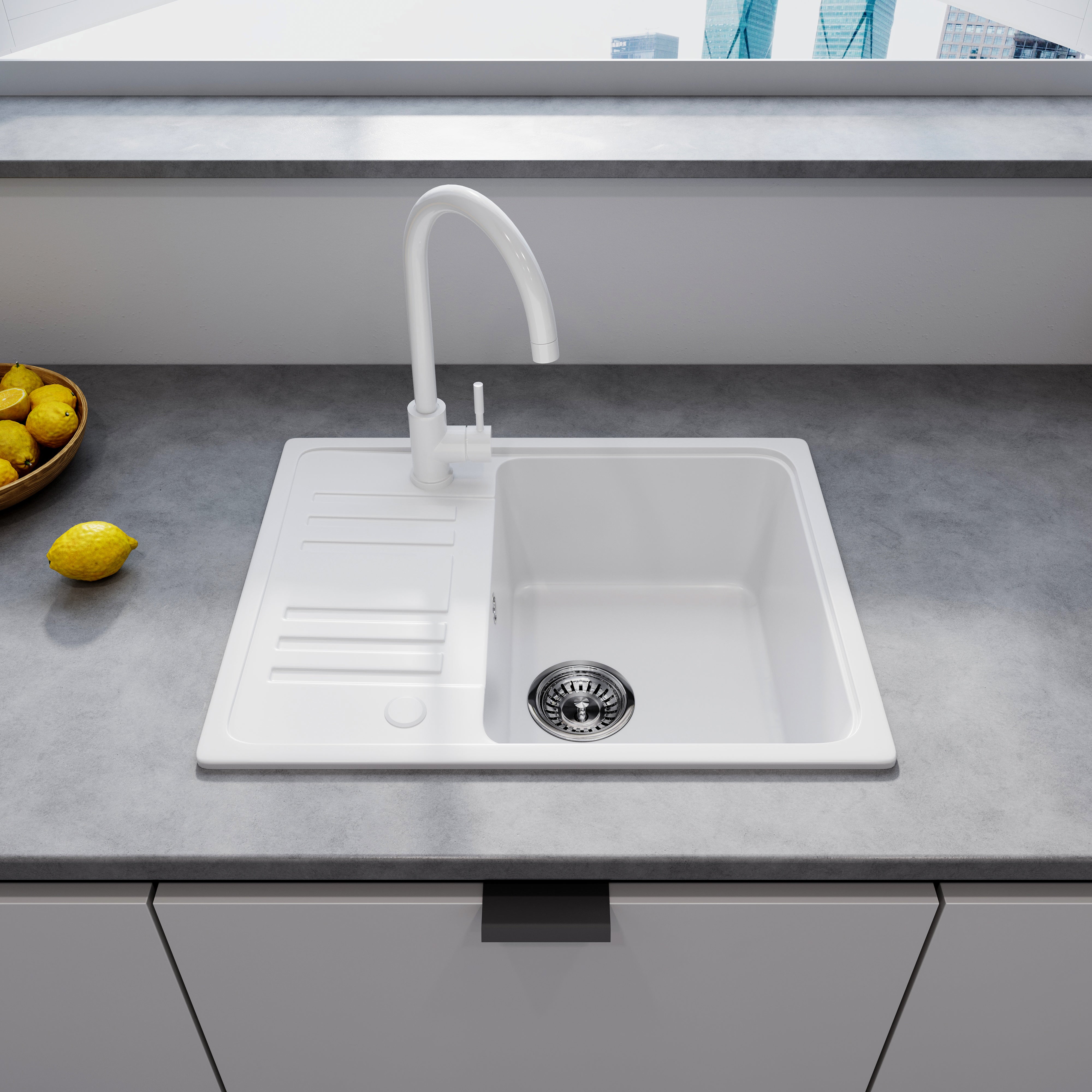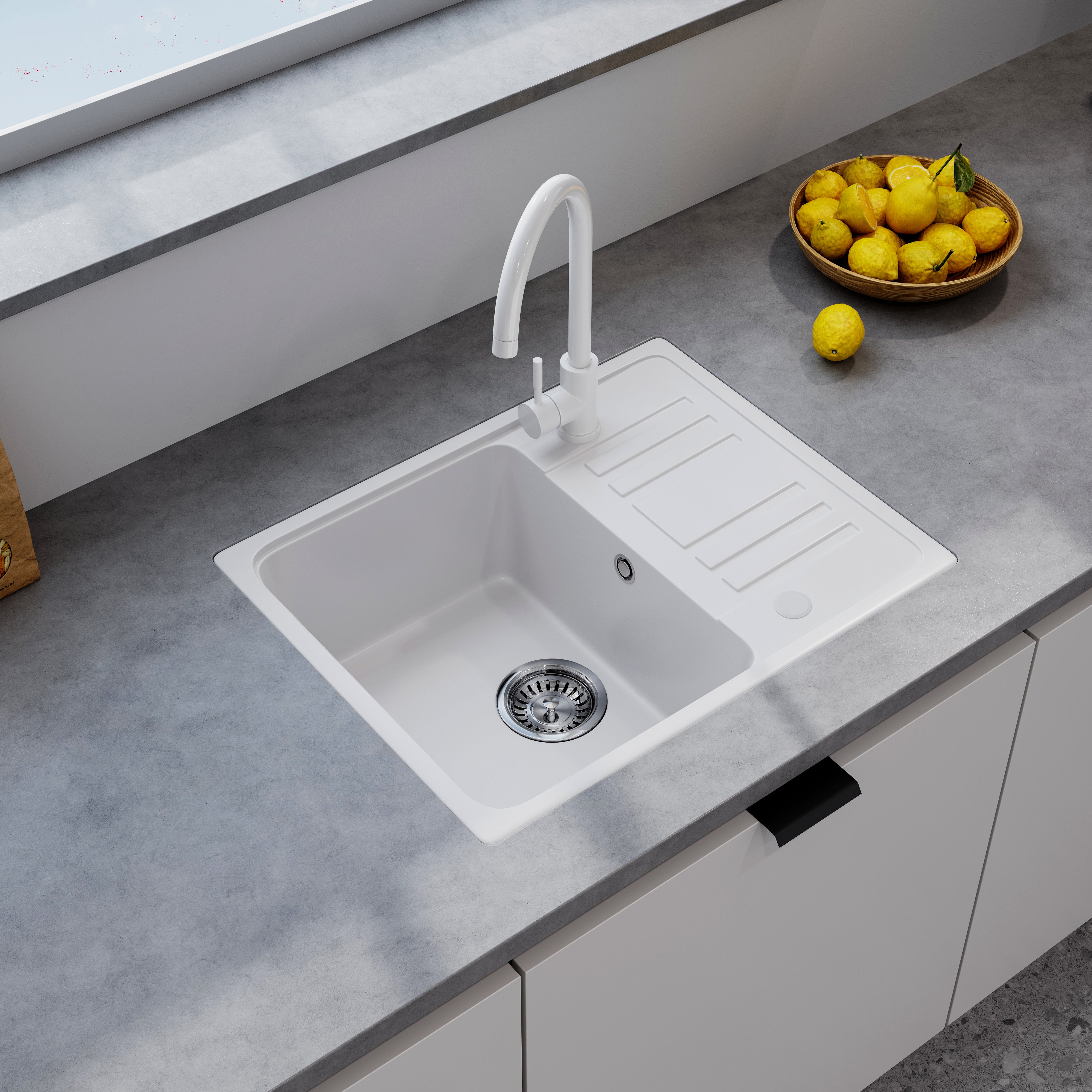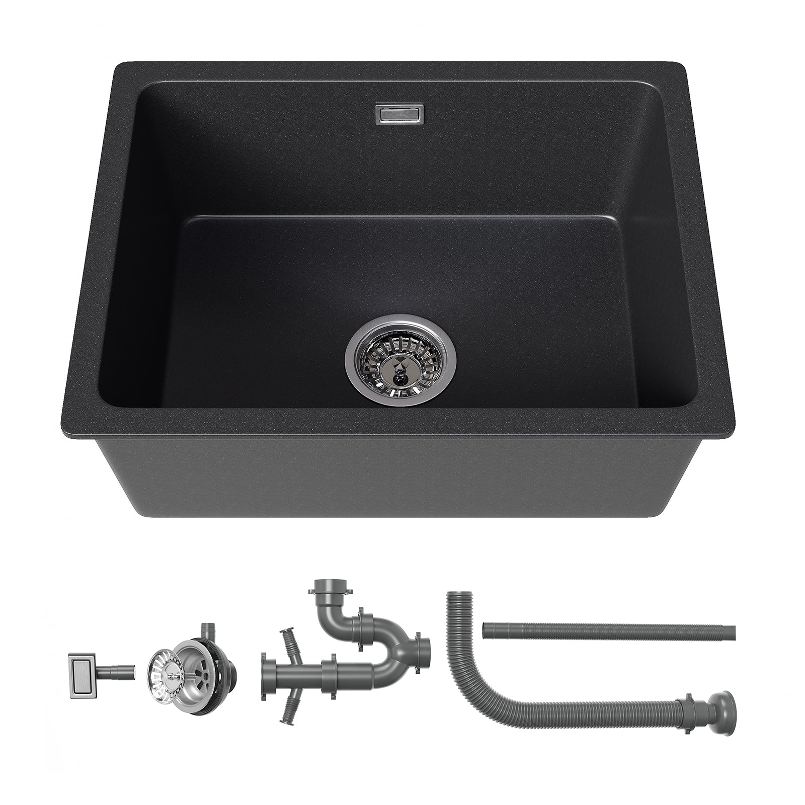 HOROW A02R-S5643B Granitspüle Schwarz 56×43 cm, Kratzfest, eckig, pflegeleicht