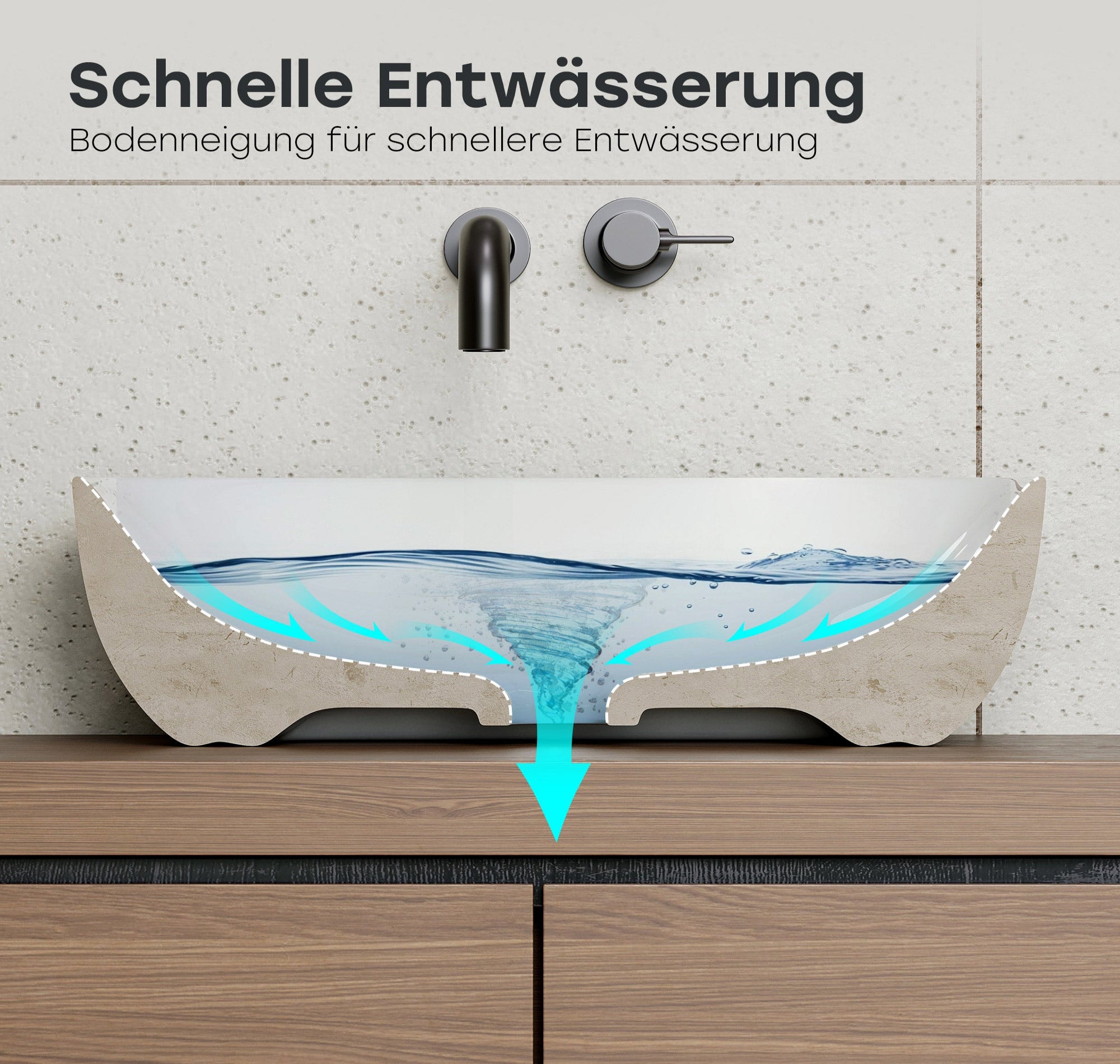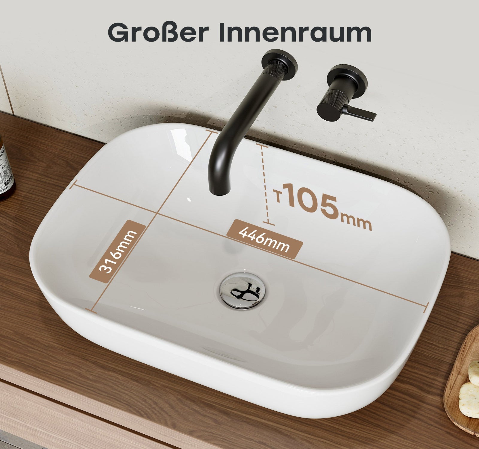 - Ohne Hahnloch und Überlauf: Bietet flexible Montageoptionen, kompatibel mit Standardabflüssen.