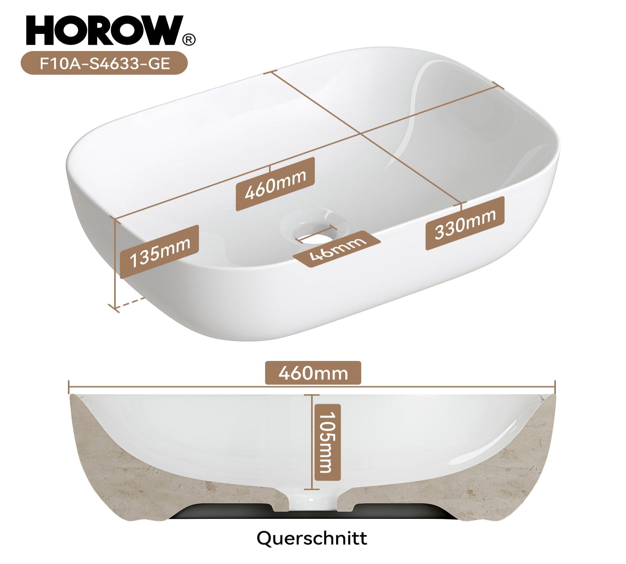HOROW F10A-S4633 Waschbecken Oval Weiß 46x33x13,5 cm