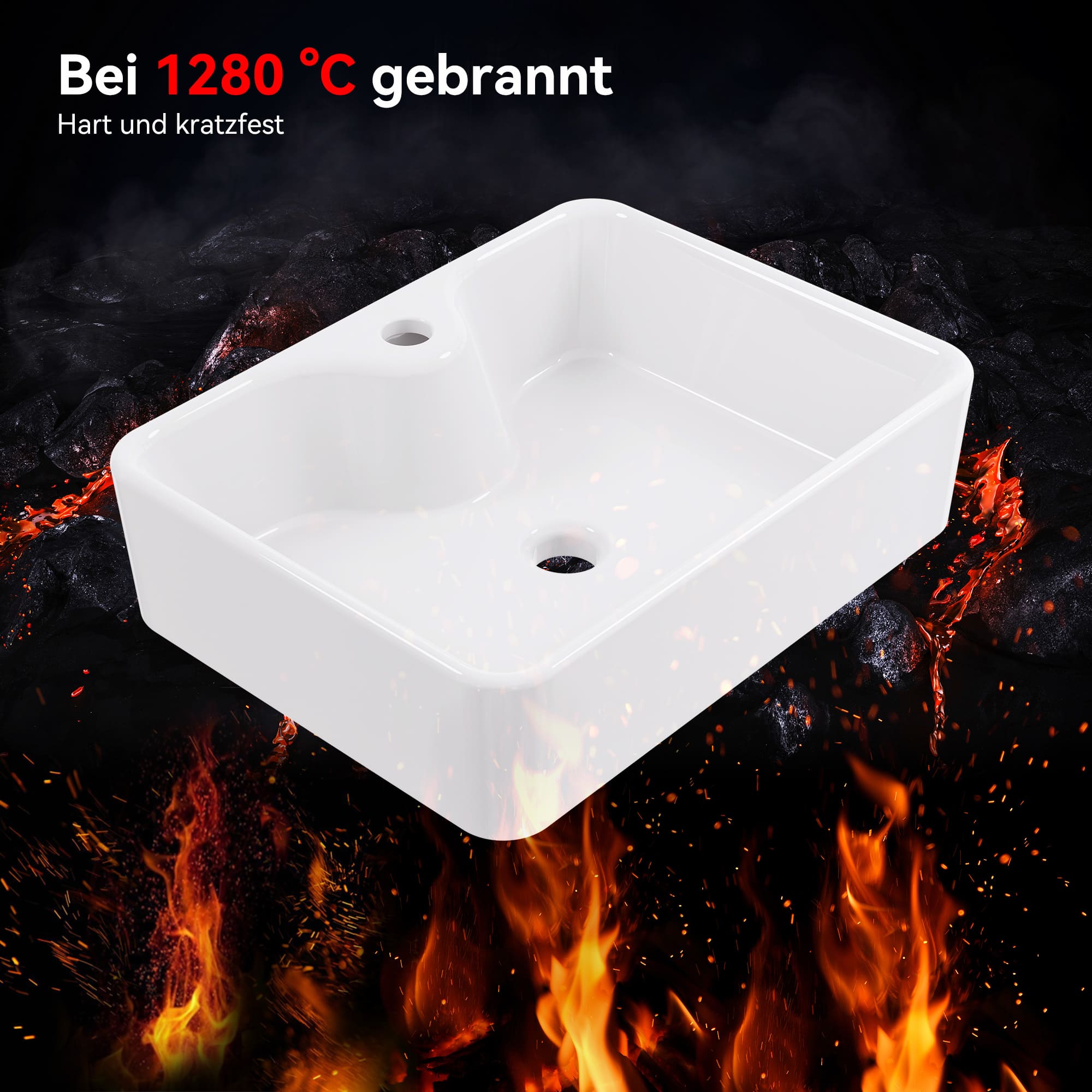 HOROW A09R-S6045W Granite sink 60 × 45 cm, scratch-resistant, square inset sink 09R-S6045W-GE