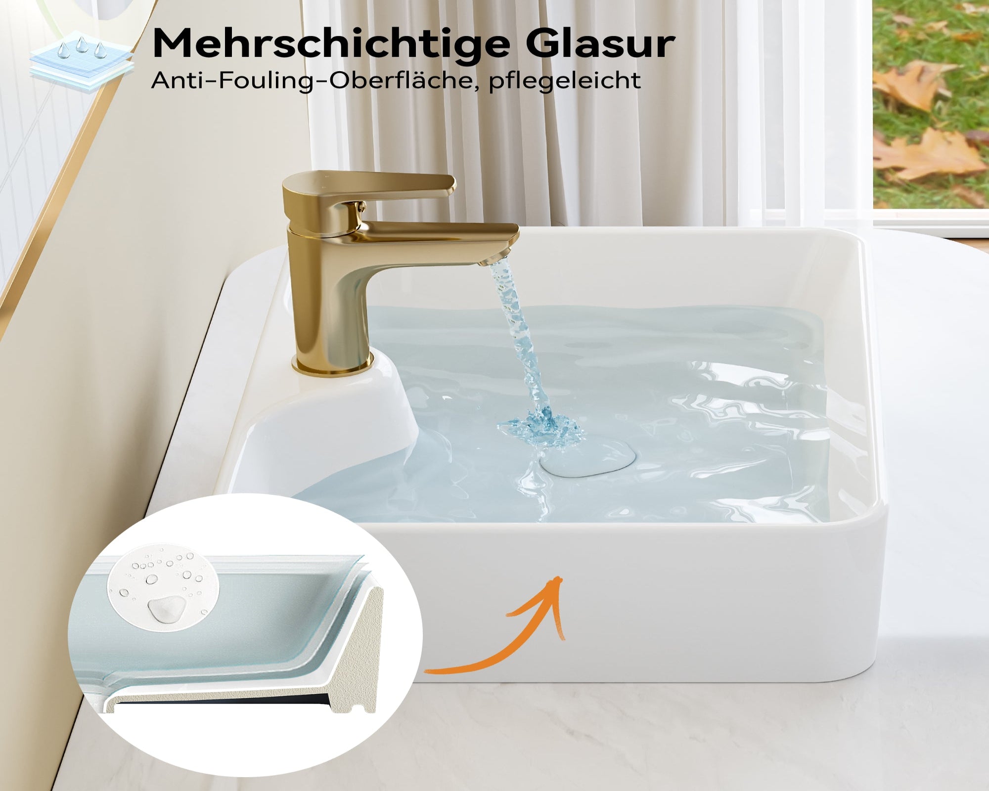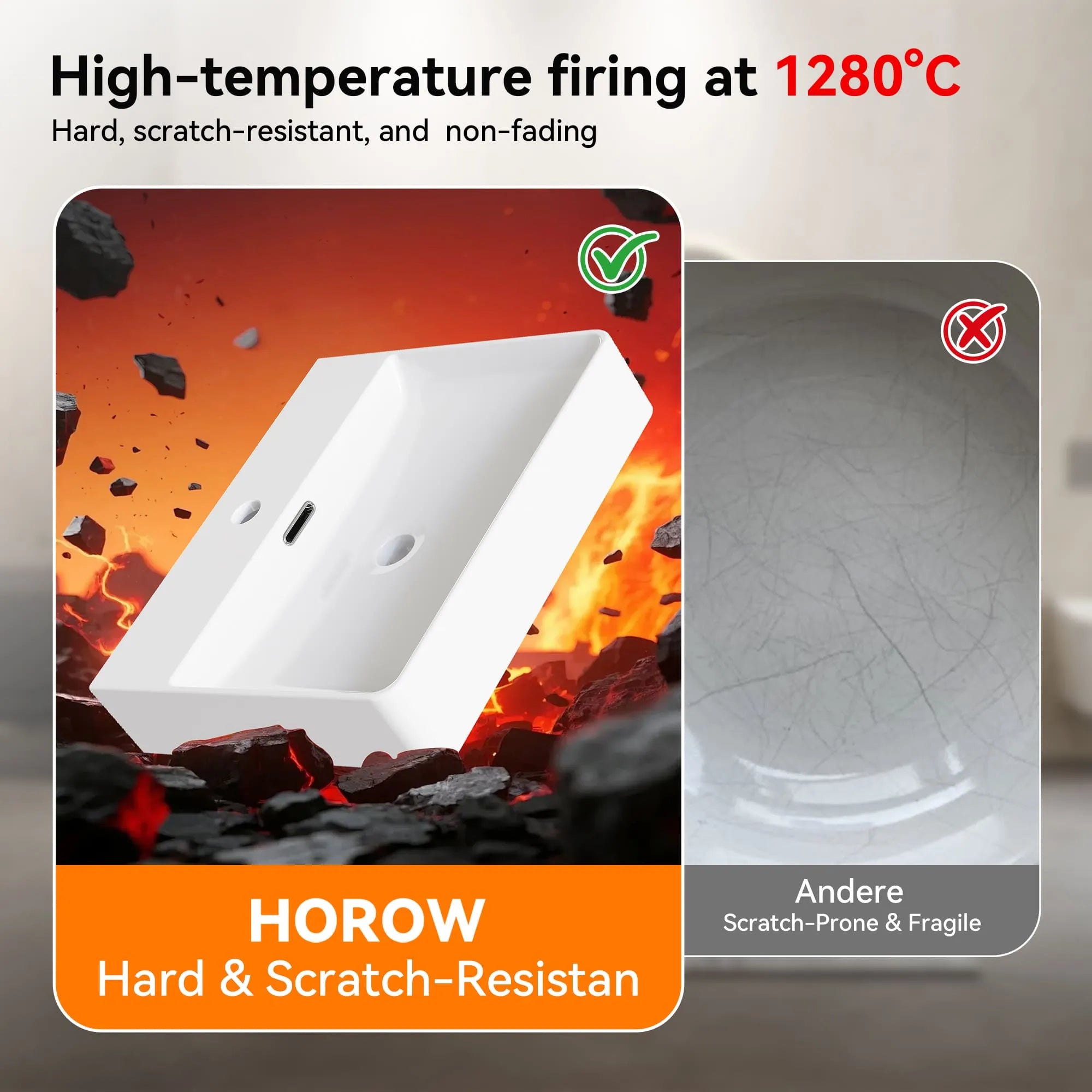 HOROW F12A-S3930 Washbasin with nano-coating, thin 8 mm rim