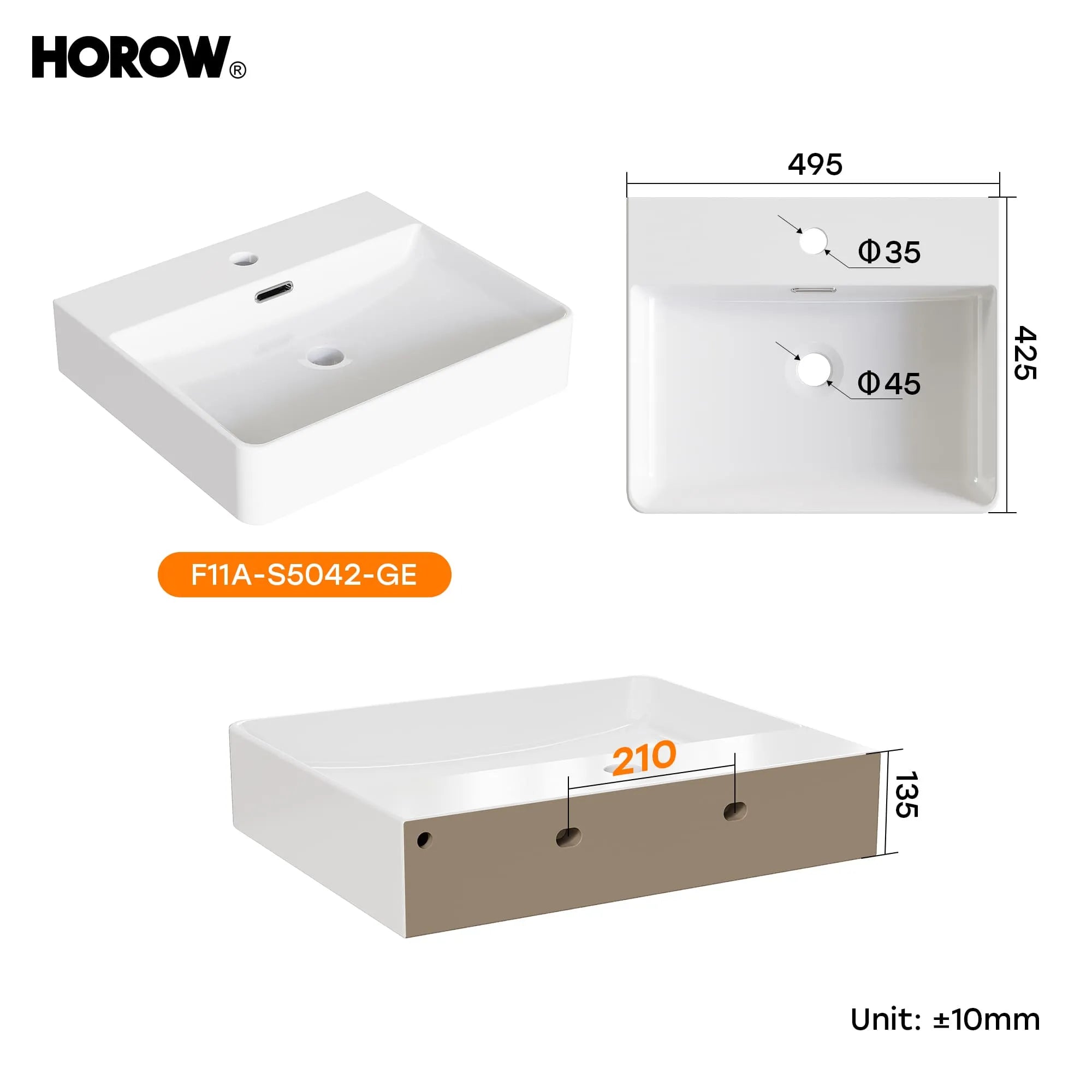 HOROW F08R-S4842W Ceramic Washbasin 48×42 cm