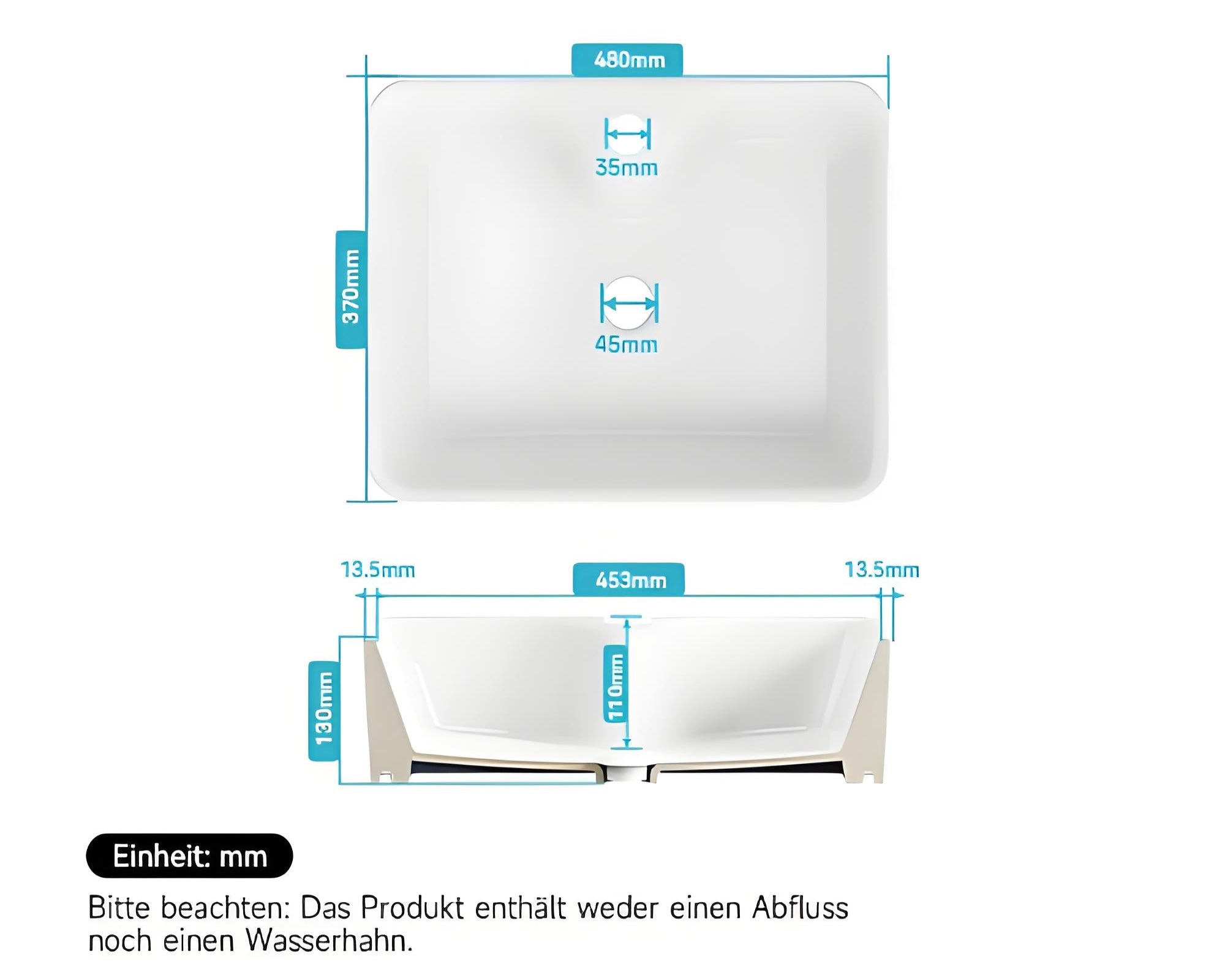 HOROW F10A-S4837 countertop washbasin rectangular 48x37x13 cm