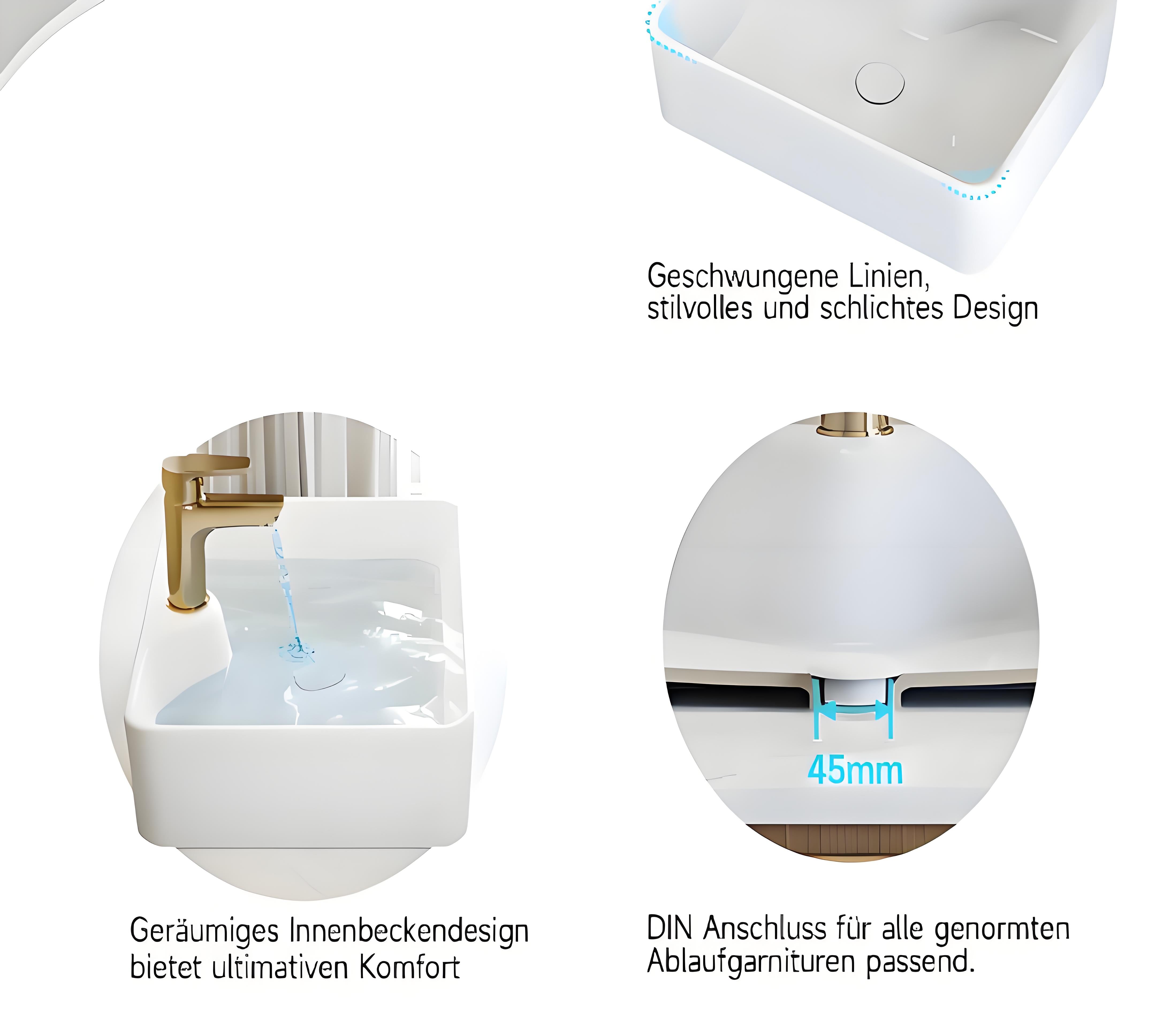 HOROW F12A-S6040 countertop washbasin, 60×40 cm, white, thin rim, nano-coating