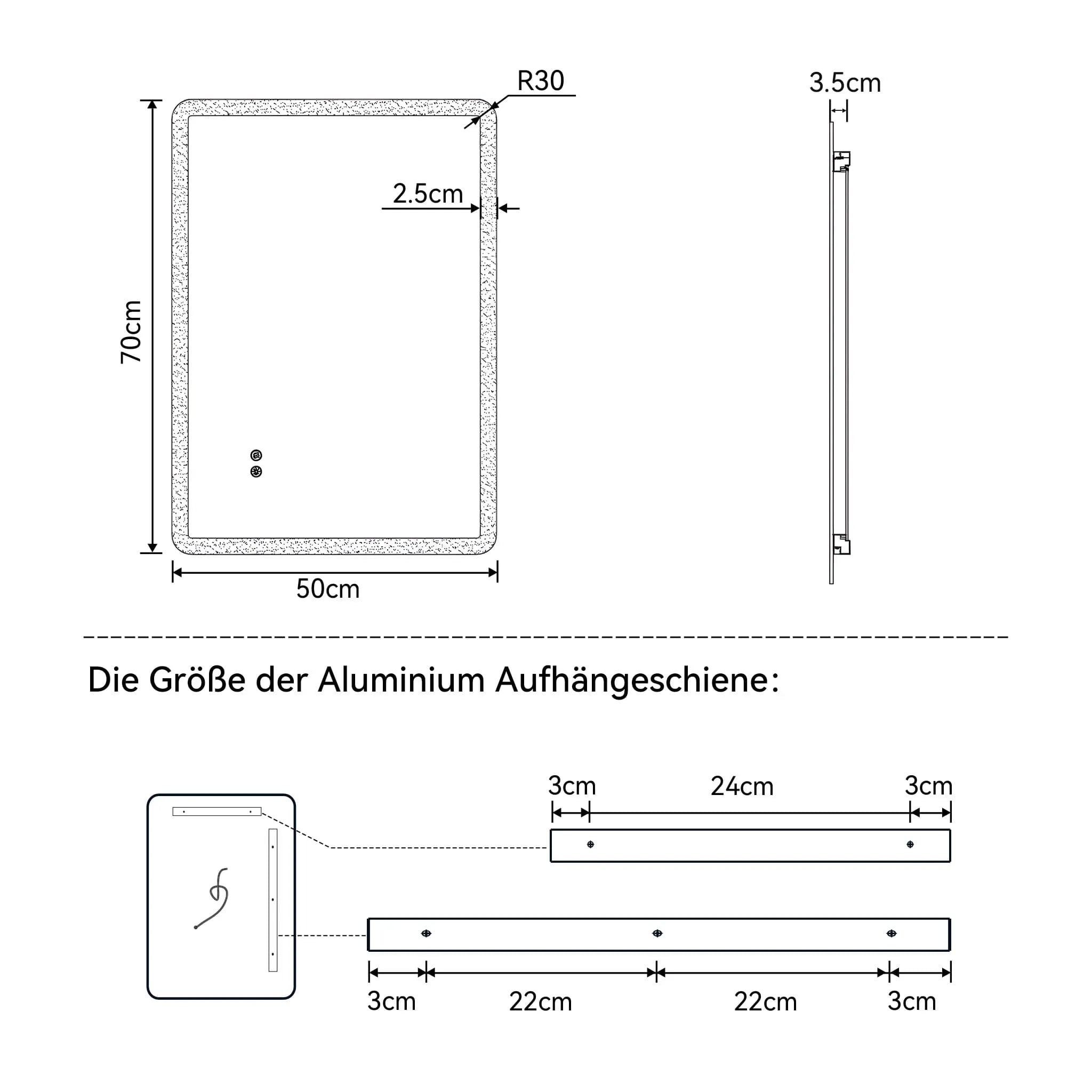 Bathroom mirror with defogging button (300×350 mm area) – ensures a clear view, even after hot steam baths or long showers.