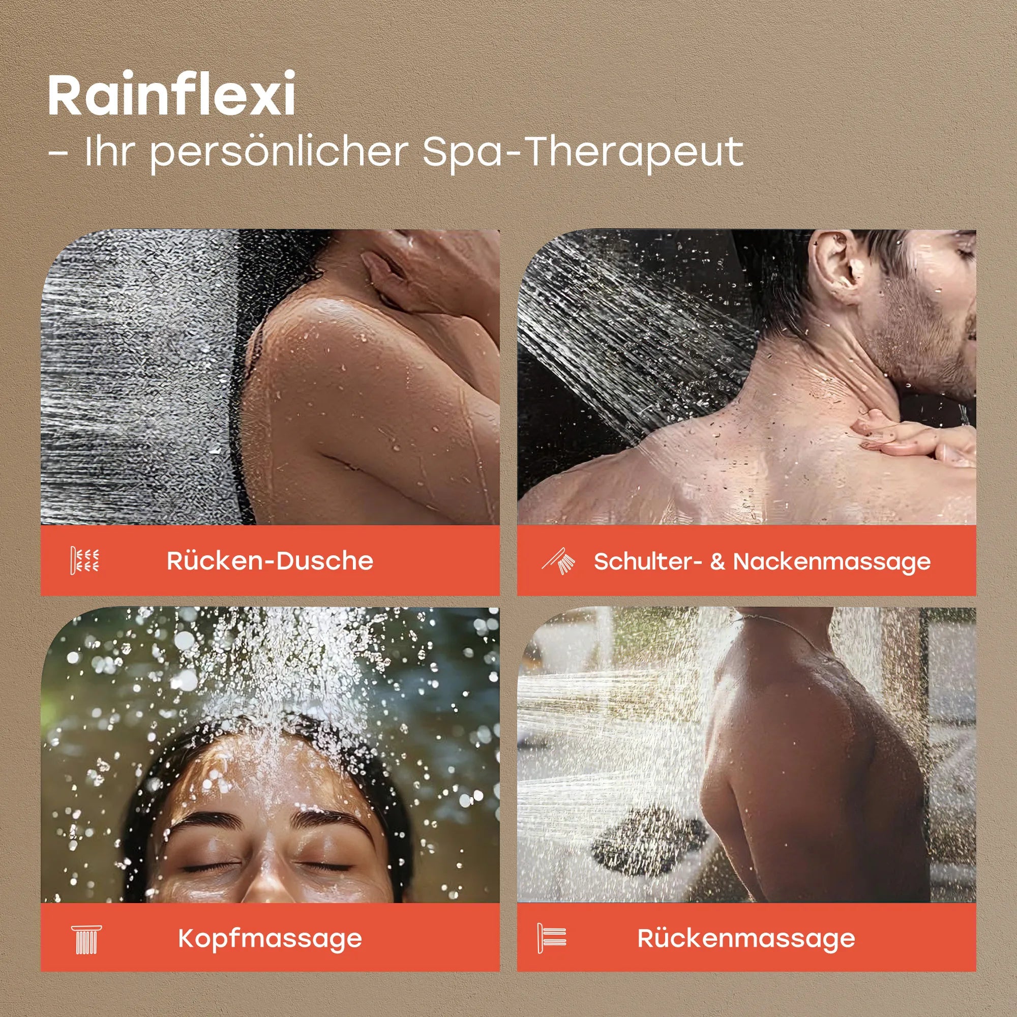 Wählen Sie zwischen Regen-, Massage- oder Kombinationsstrahl. Der Massage-Strahl kann helfen, Muskelverspannungen zu lösen, die Durchblutung zu fördern und den Körper zu entspannen.