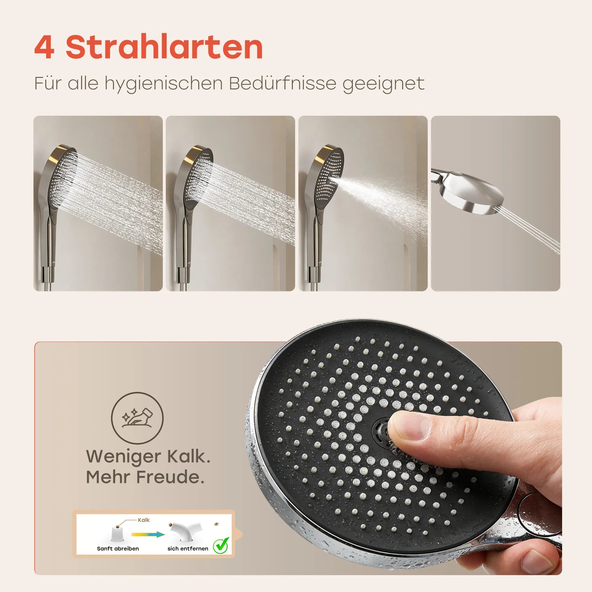 3 Strahlarten mit Massagefunktion