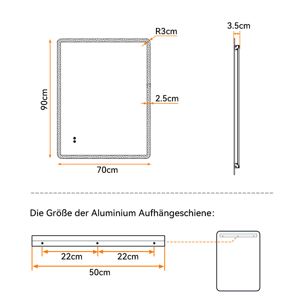 HOROW M7090S Bathroom Wall Mirror LED with Lighting 70x90 cm