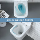 The fully glazed inner surface of the wastewater pipe ensures fast, clean drainage, reduces deposits and prevents the formation of unpleasant odors. - Powerful single-hole superspin flush:
