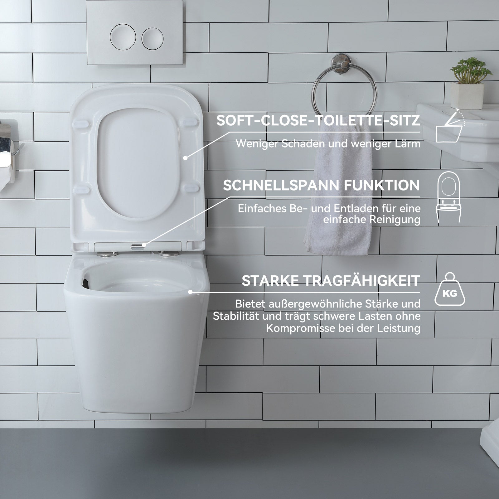The sophisticated waterproofing system reliably prevents the escape of unpleasant odors and ensures a fresh bathroom atmosphere.