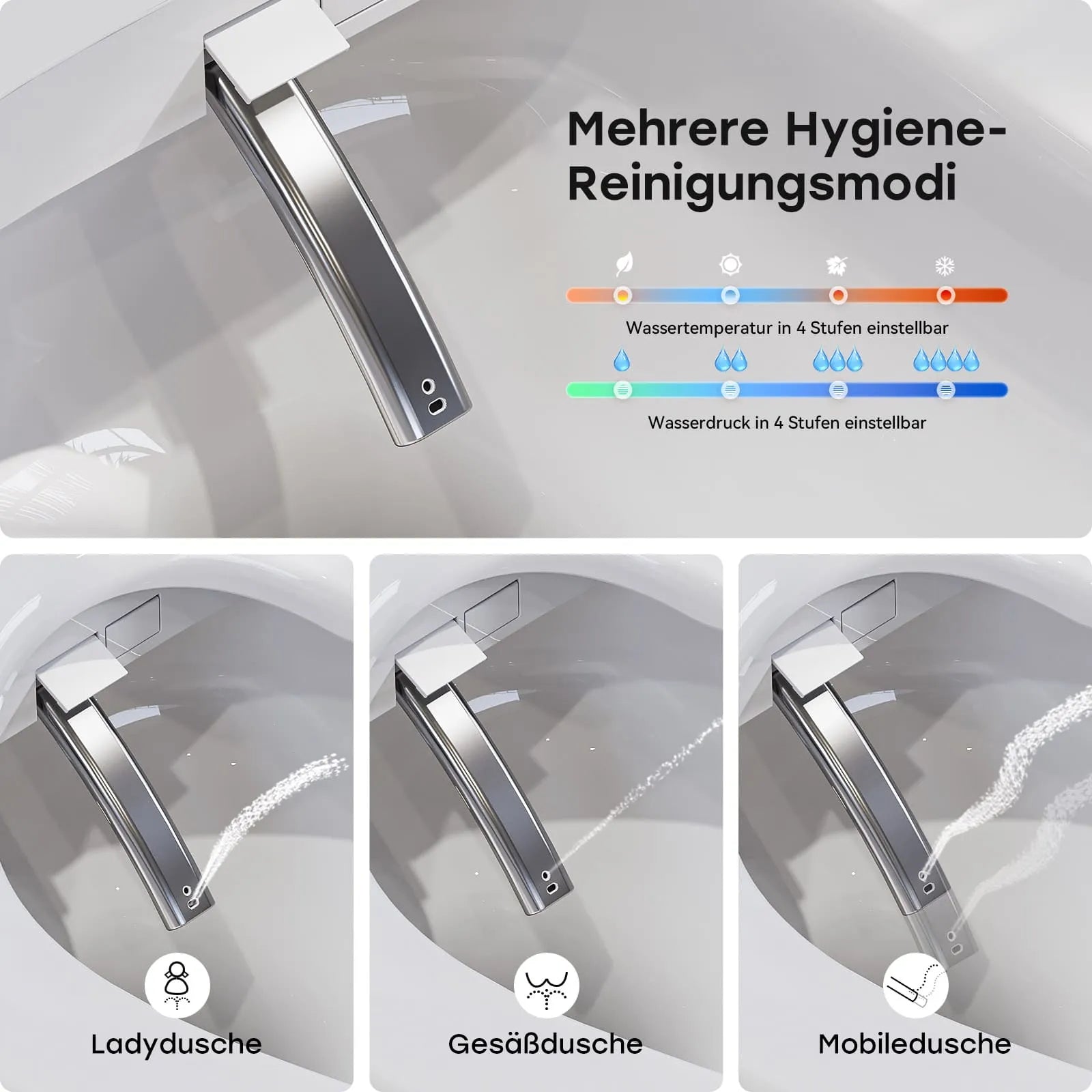 Bietet Gesäß- und Intimreinigungmit individuell einstellbarer Düsenposition, Wassertemperatur und Wasserdruck für eine angenehme und gründliche Reinigung.