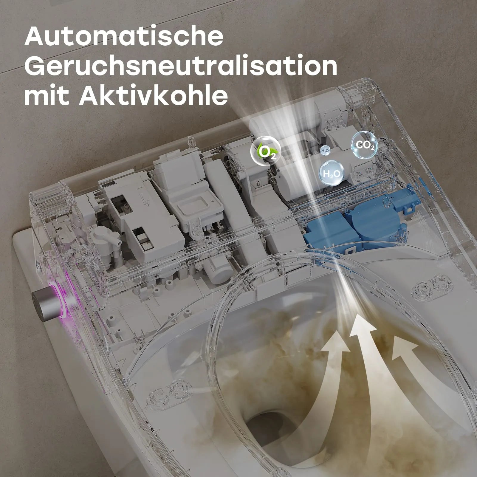Das integrierte Deodorierungssystemreduziert unangenehme Gerüche und sorgt für eine frische Atmosphäre im Badezimmer.
