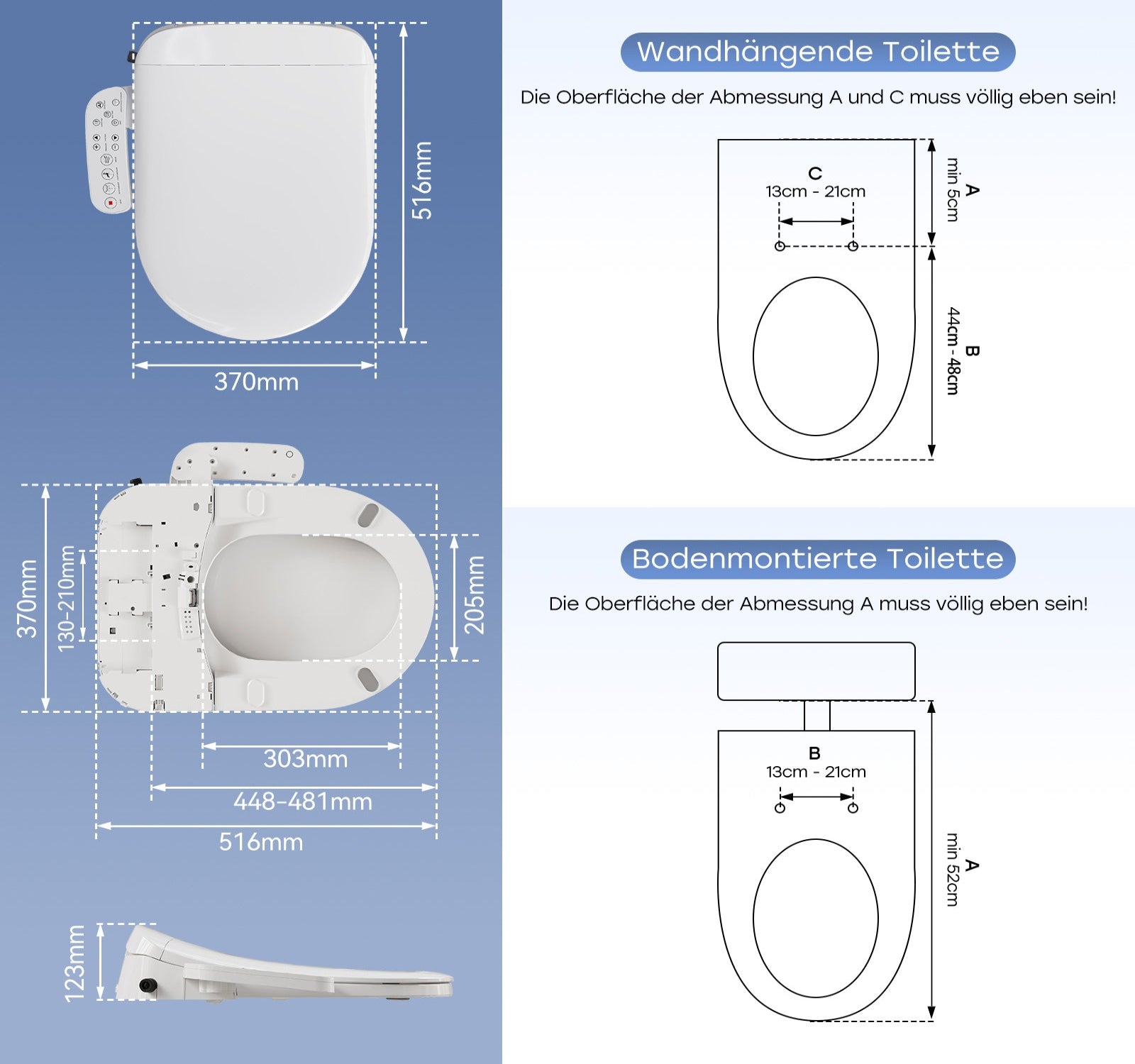 It discreetly illuminates the toilet area in the dark. Perfect for nighttime visits – without harsh light or disturbances. - Side remote control: