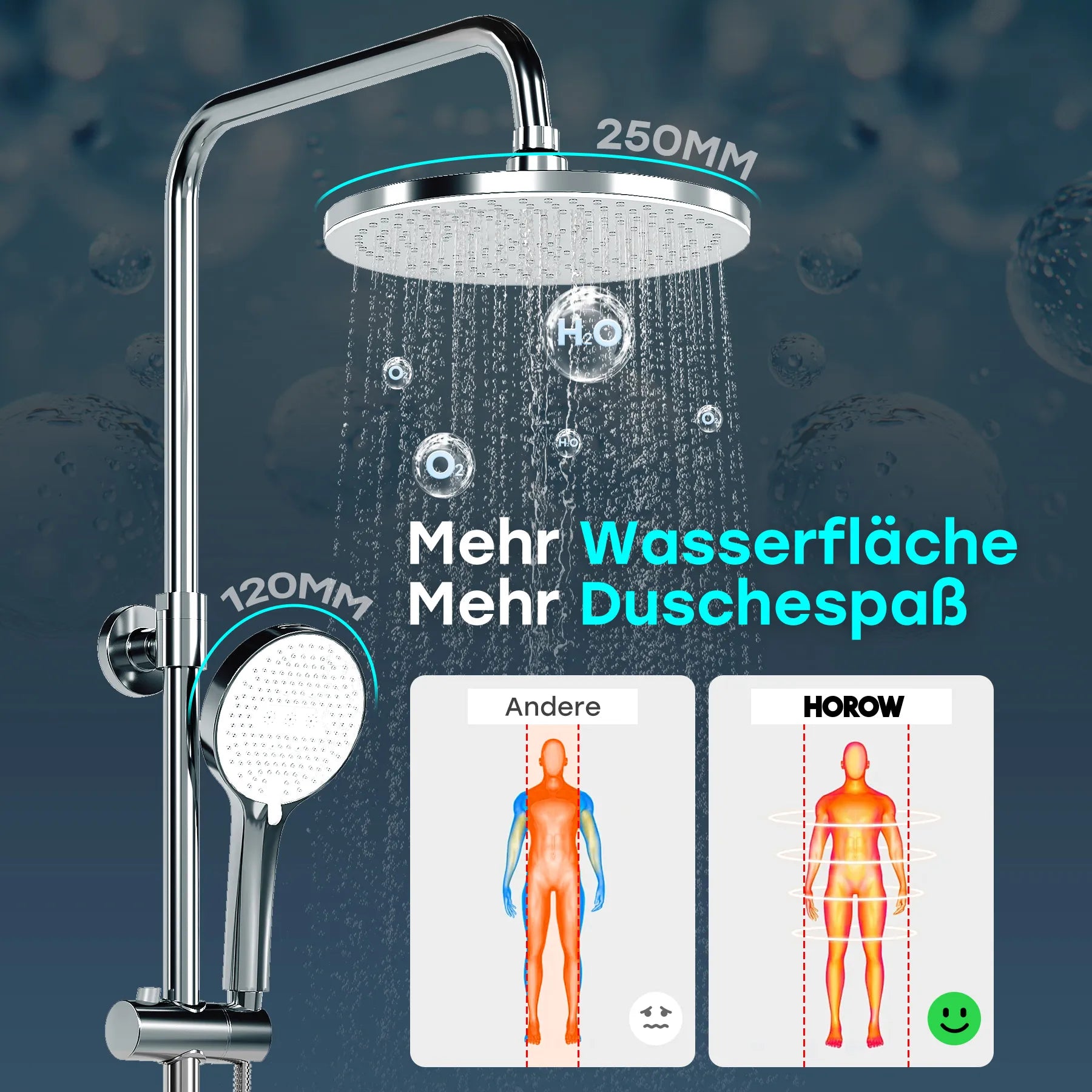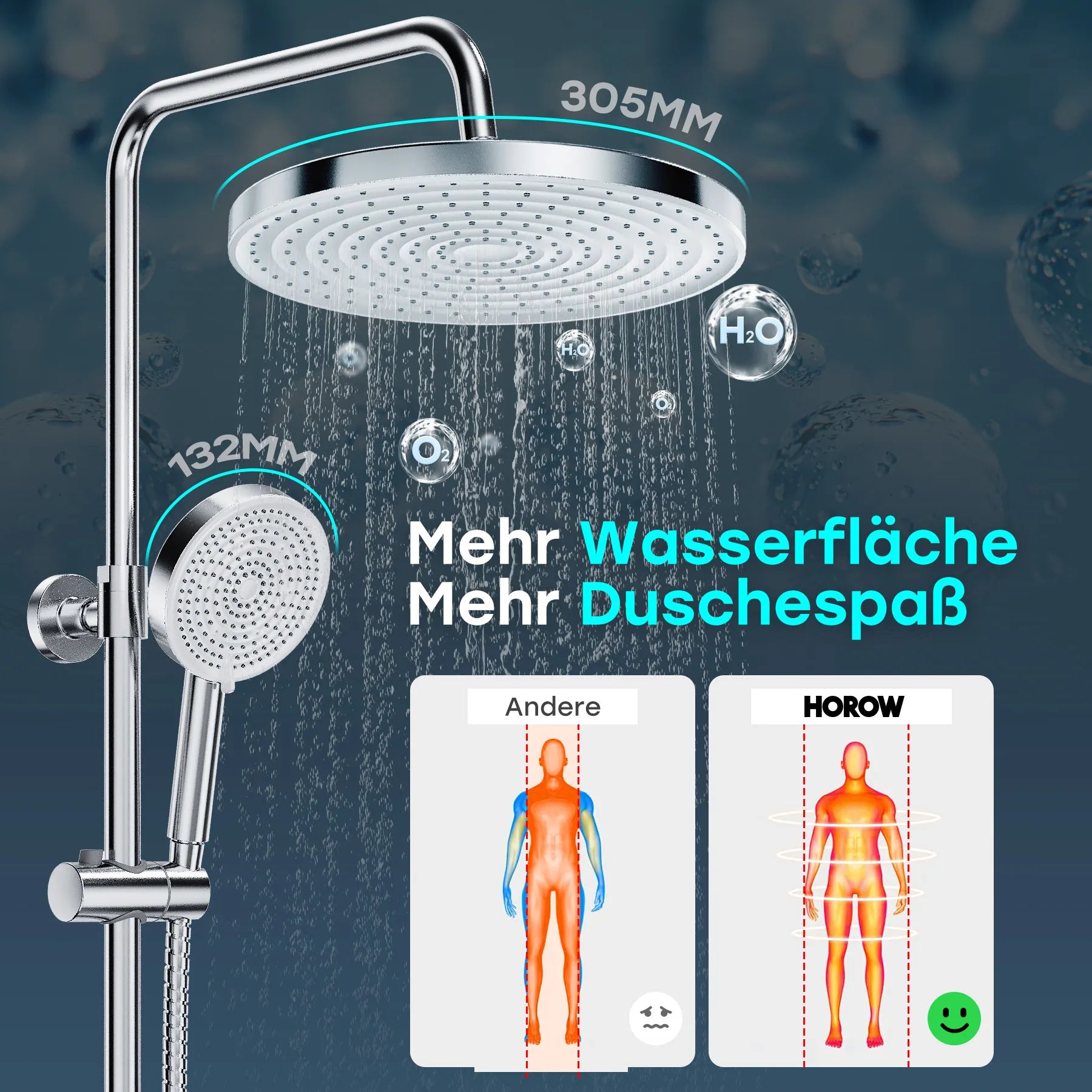 HOROW LYHS02H Thermostatic Shower System – 30 cm Round Head, 5 Modes, Ceramic Valve Core, Chrome
