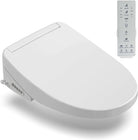 Smart bidet seat with antibacterial stainless steel nozzle and self-cleaning function. Front and rear cleaning adjustable via remote control.