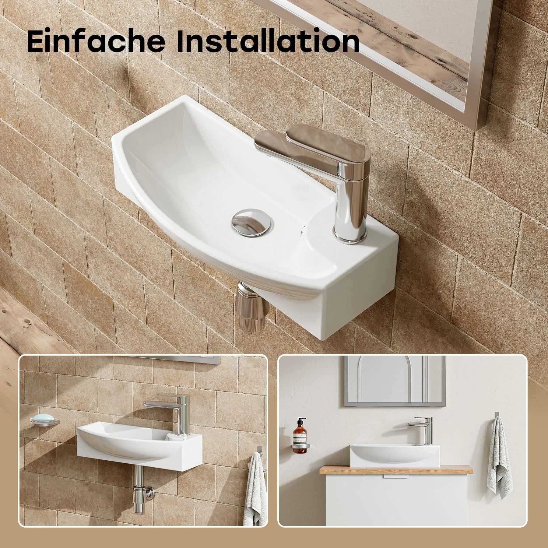 Platzsparend: Wandmontage möglich – ideal, um wertvollen Platz in kleinen Bädern zu nutzen.