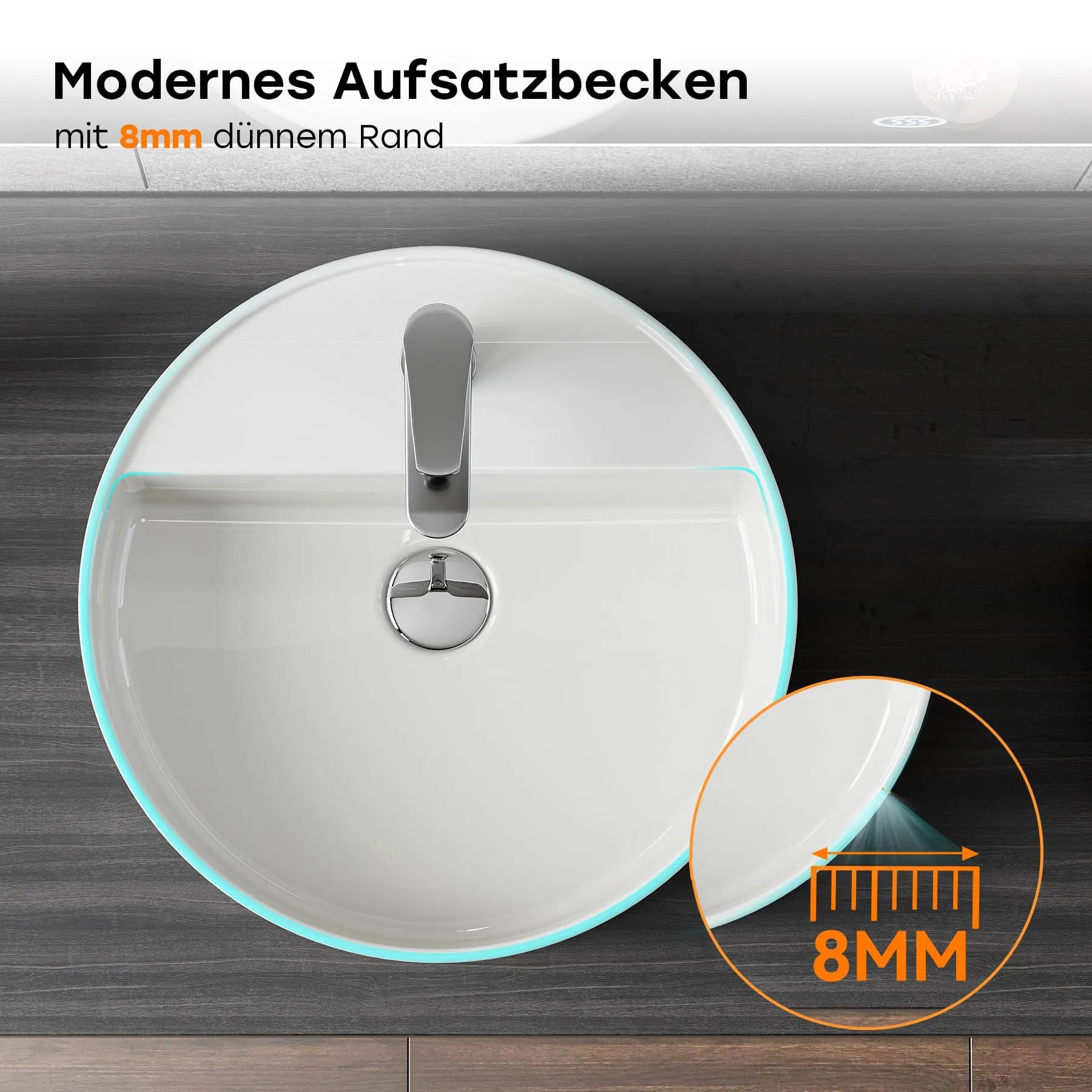 Elegantes Design: Rundes 42-cm-Waschbecken, ideal für Gäste-WC und Badezimmer. Hochwertige Keramik verleiht dem Waschtisch eine moderne, elegante Atmosphäre.
