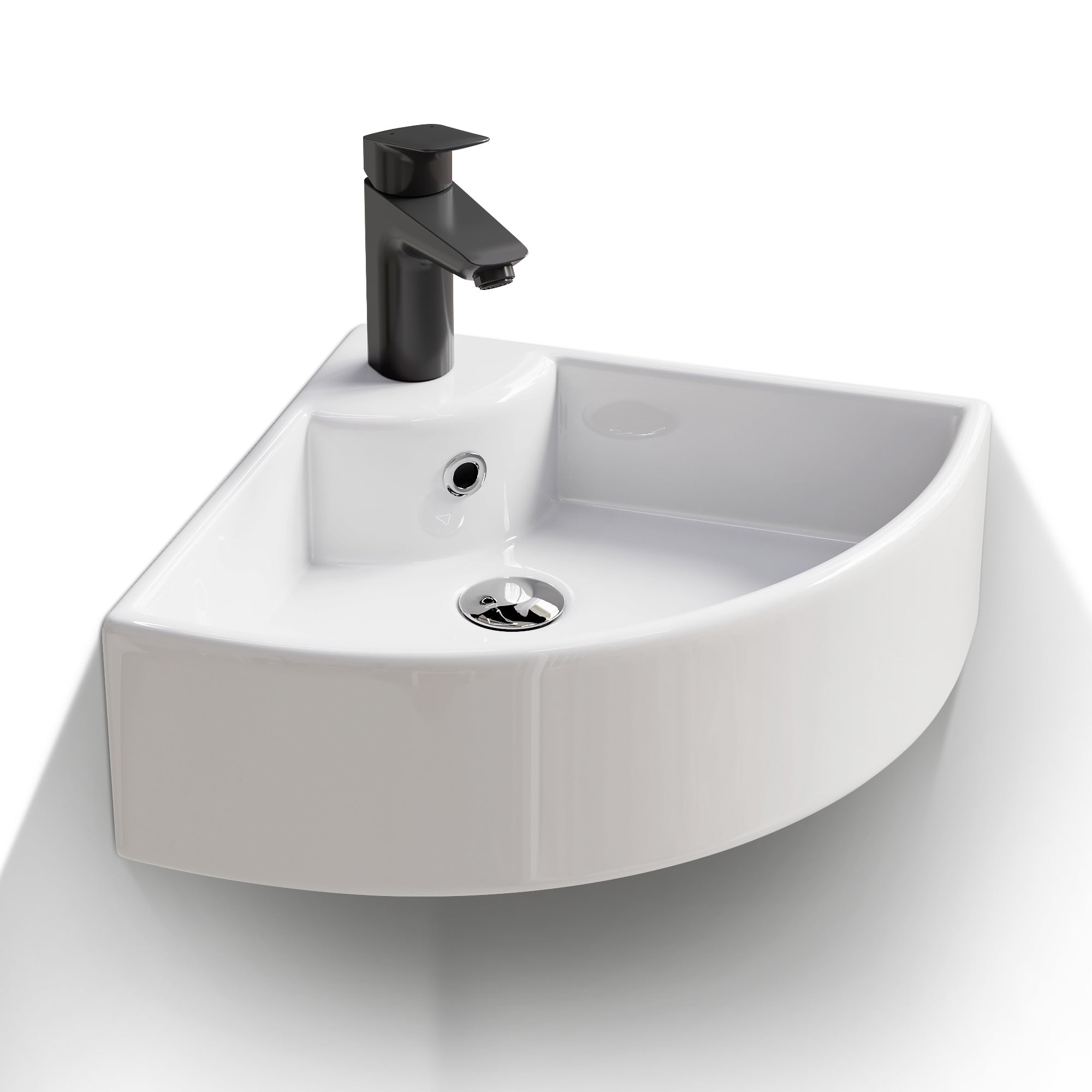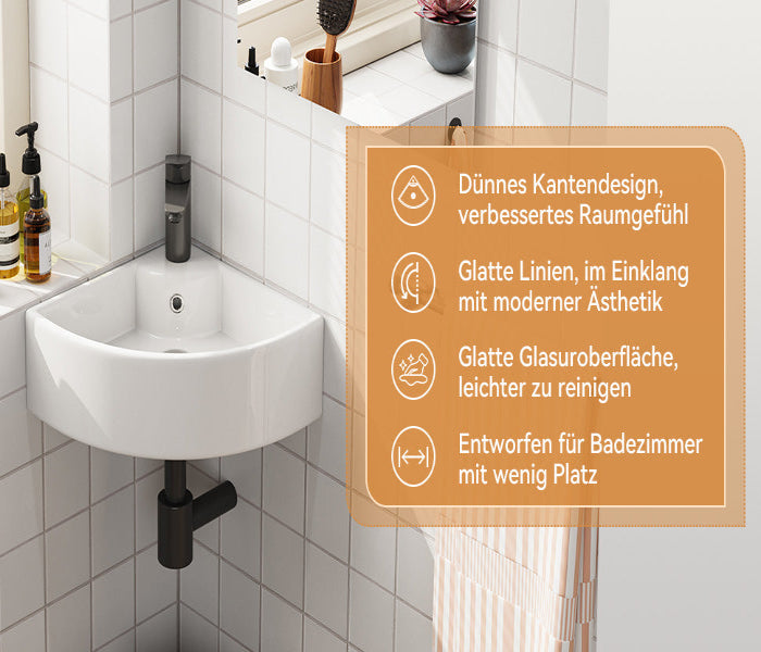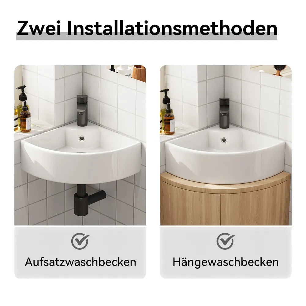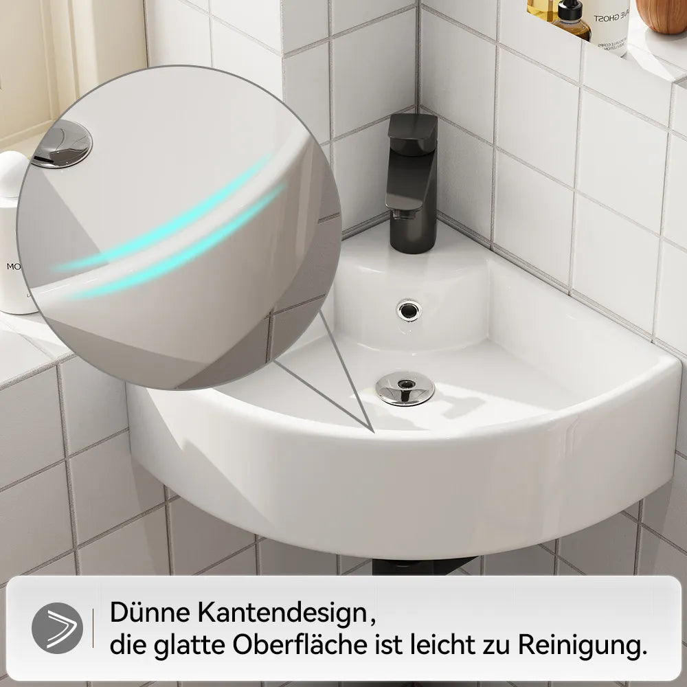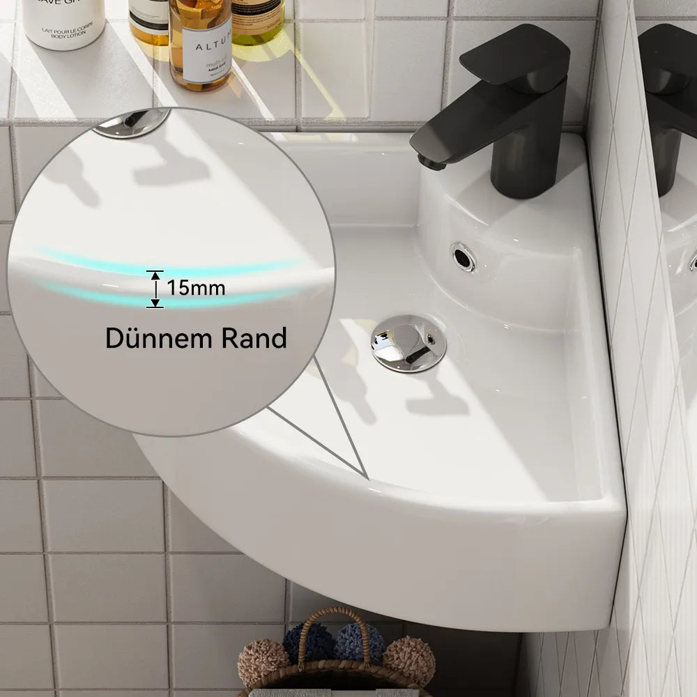 Dreieckige Form zur optimalen Raumnutzung – ideal für kleine Bäder oder Gäste-WCs. - Mit Hahnloch & Überlauf: