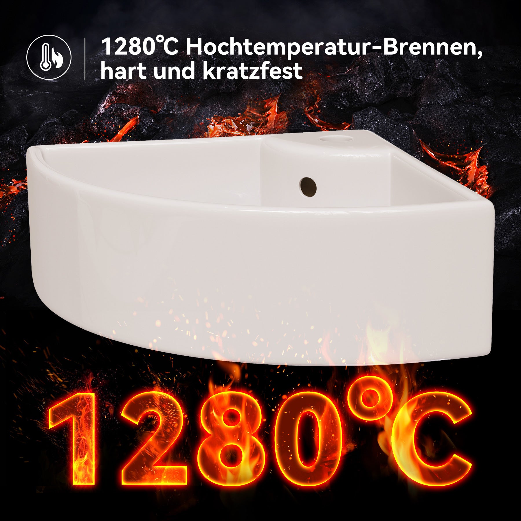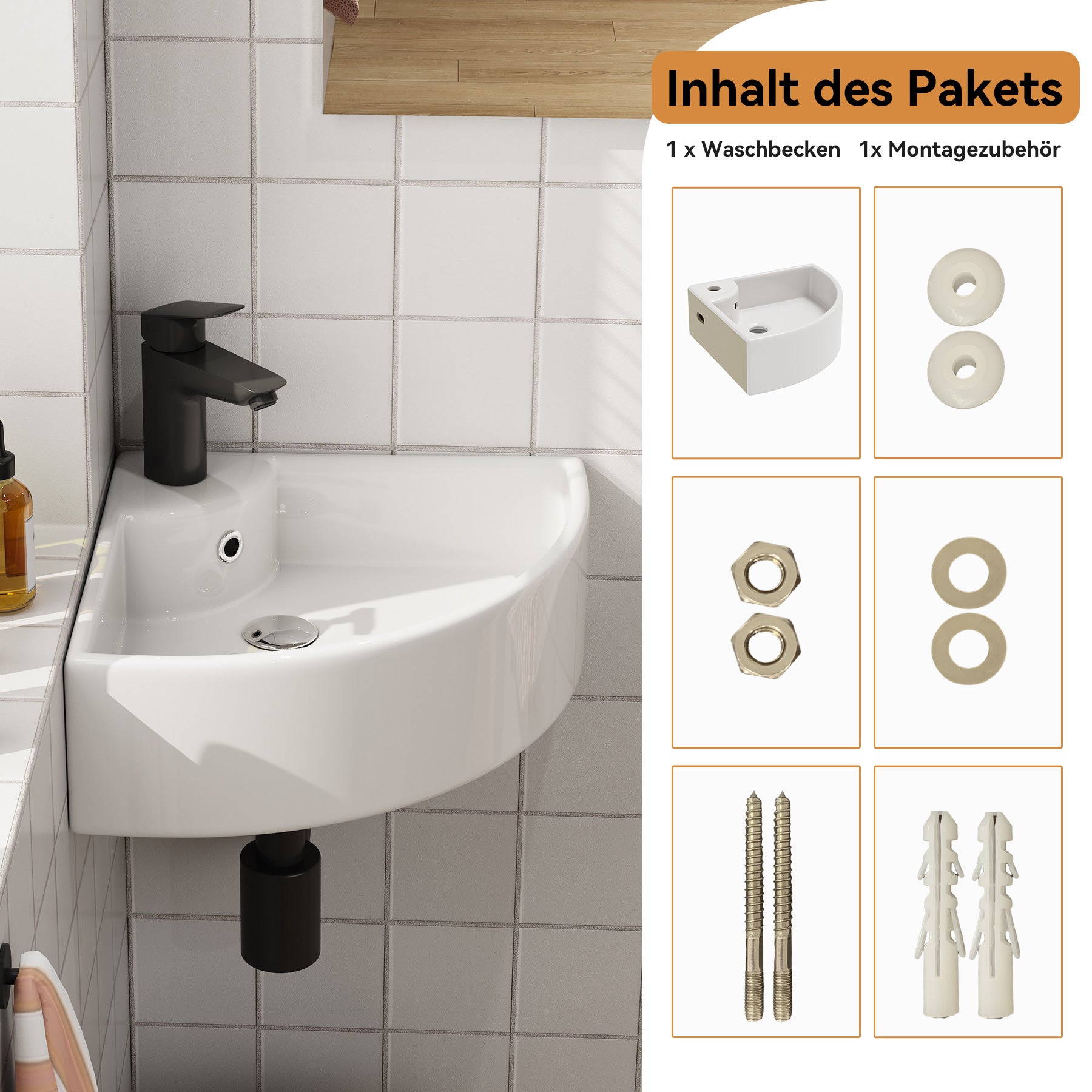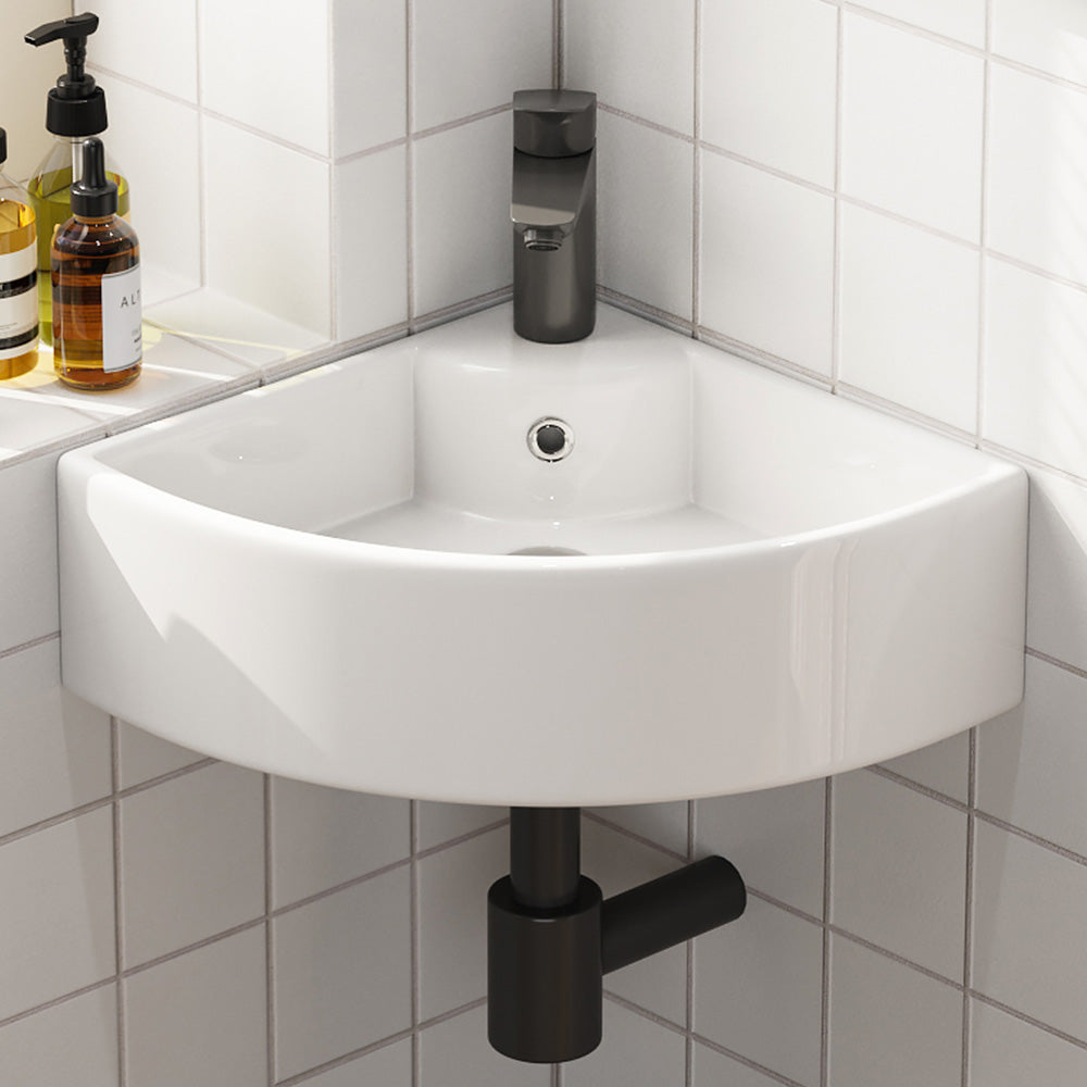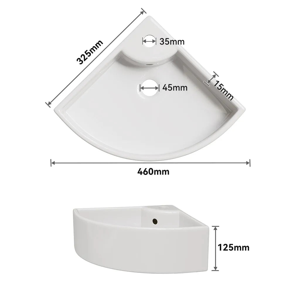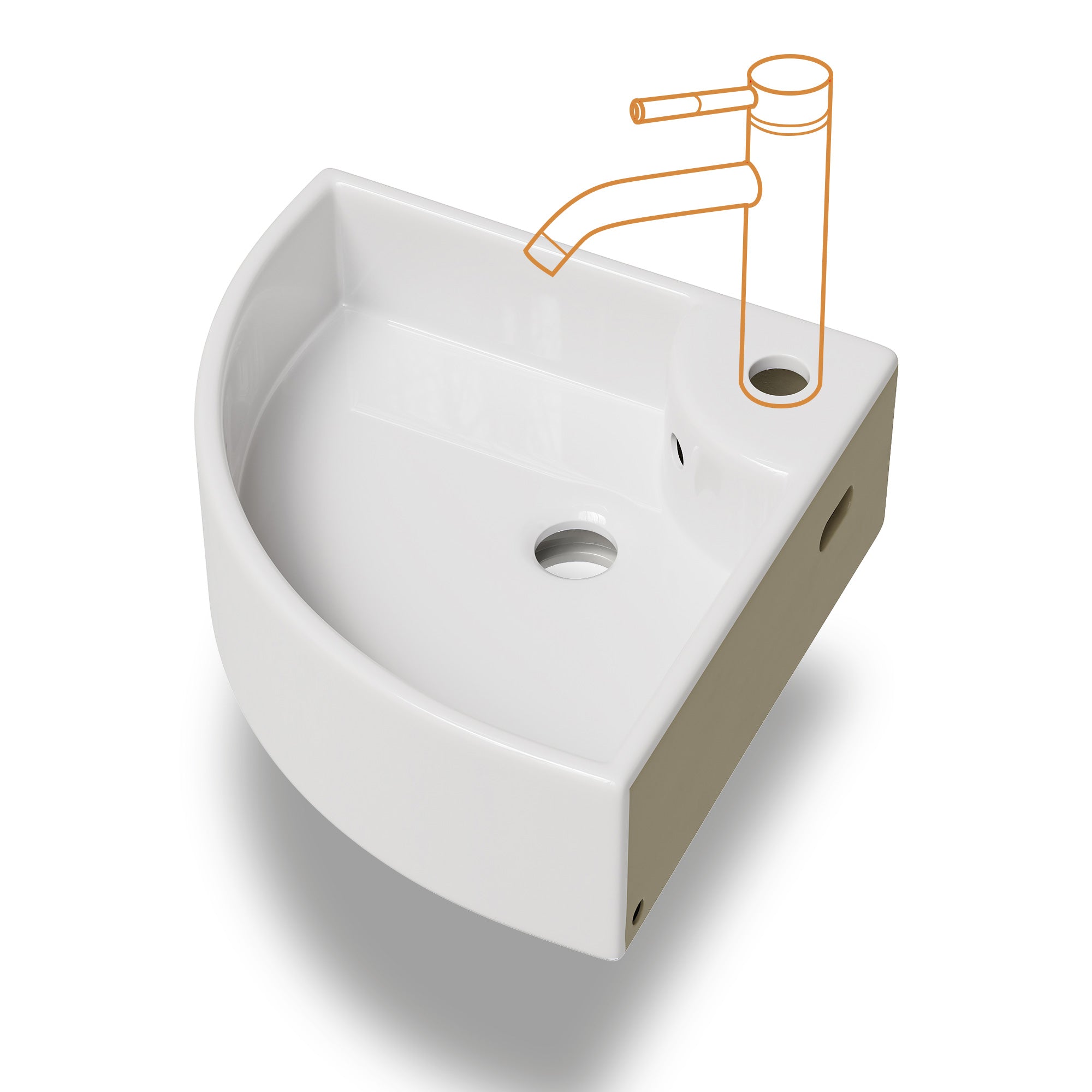 Dreieckige Form zur optimalen Raumnutzung – ideal für kleine Bäder oder Gäste-WCs. - Mit Hahnloch & Überlauf:
