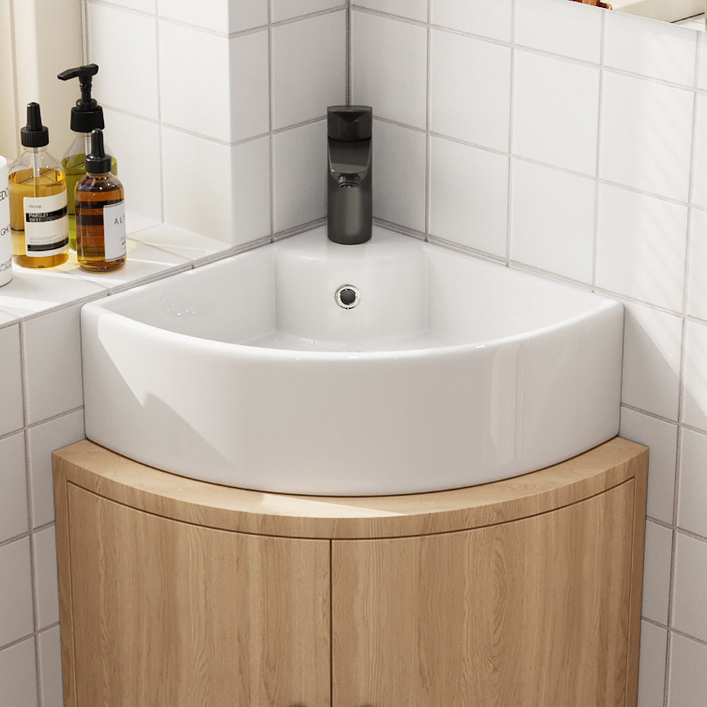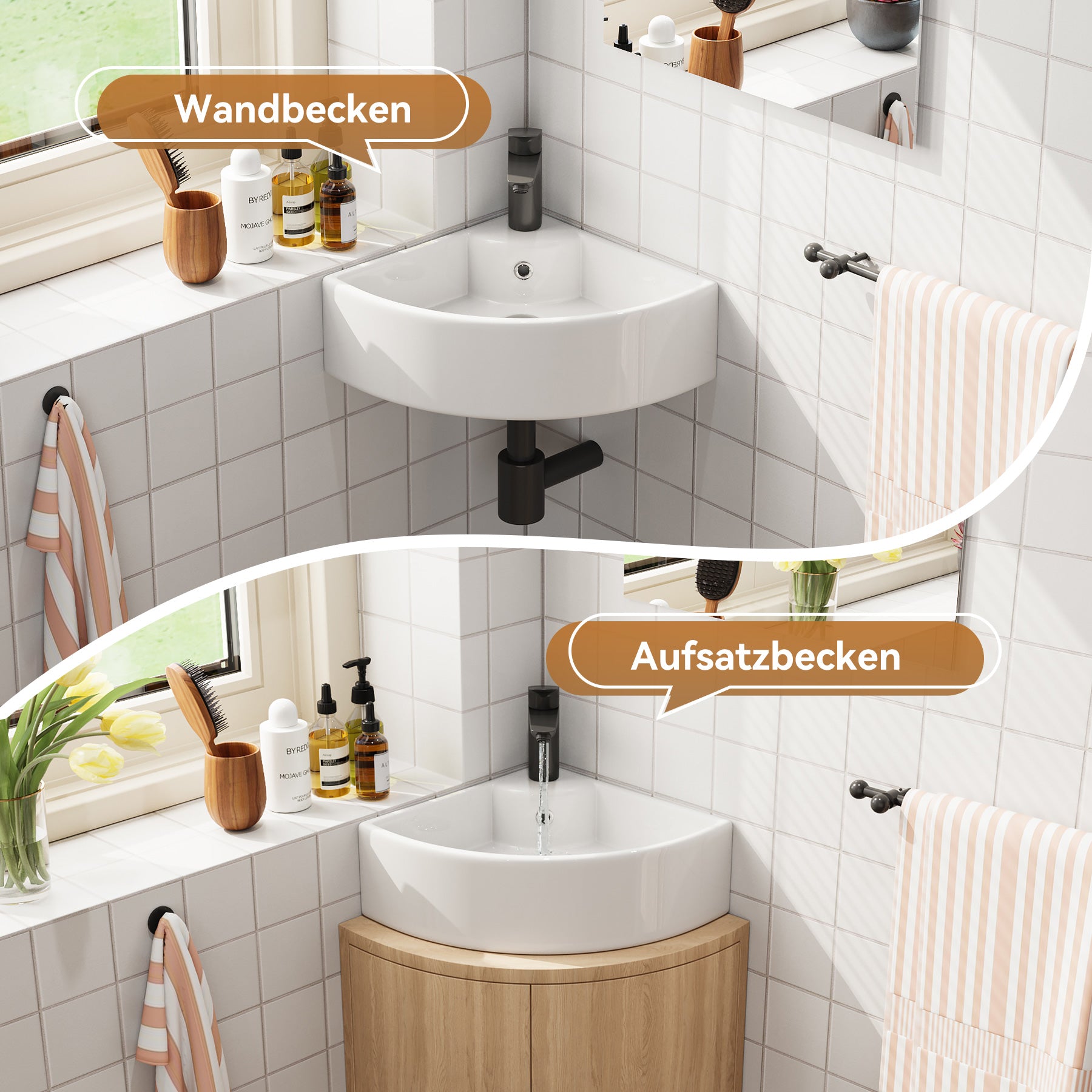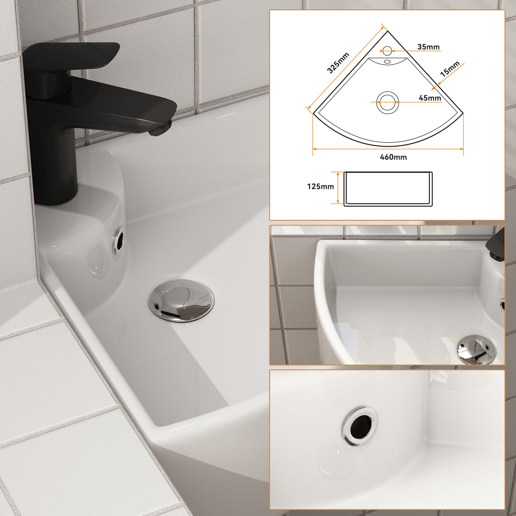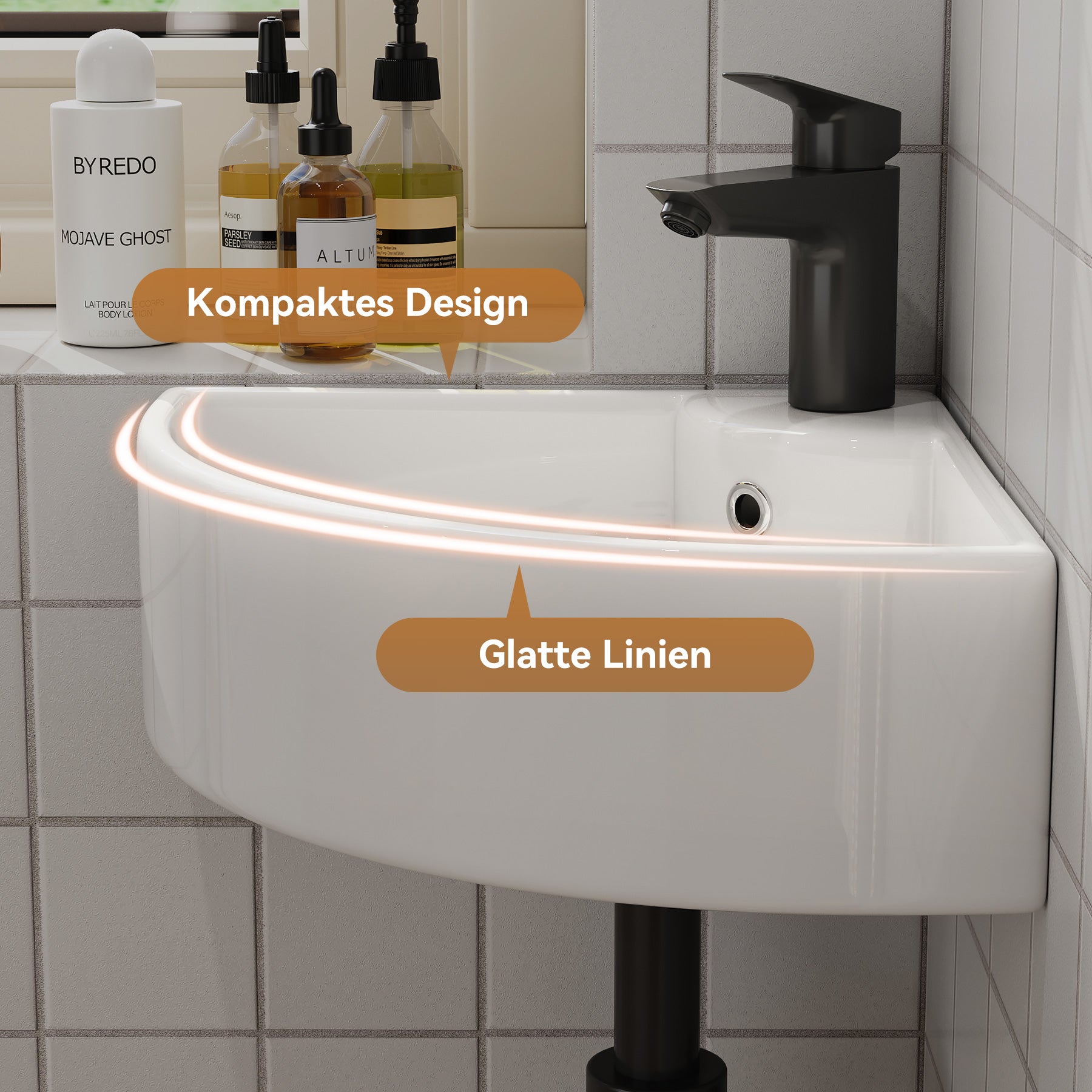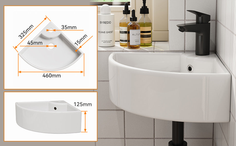 Dreieckige Form zur optimalen Raumnutzung – ideal für kleine Bäder oder Gäste-WCs. - Mit Hahnloch & Überlauf:
