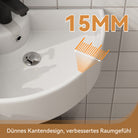 Das kompakte 46 cm Waschbecken bietet alle wichtigen Funktionen bei minimalem Platzbedarf – flexibel als Wand- oder Aufsatzwaschbecken einsetzbar. - Ultradünner Rand: