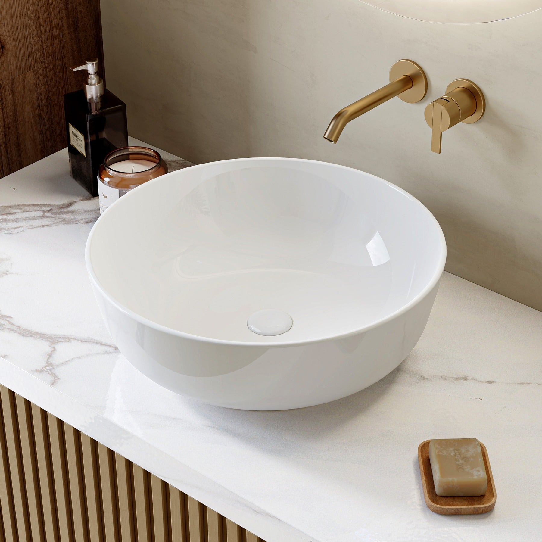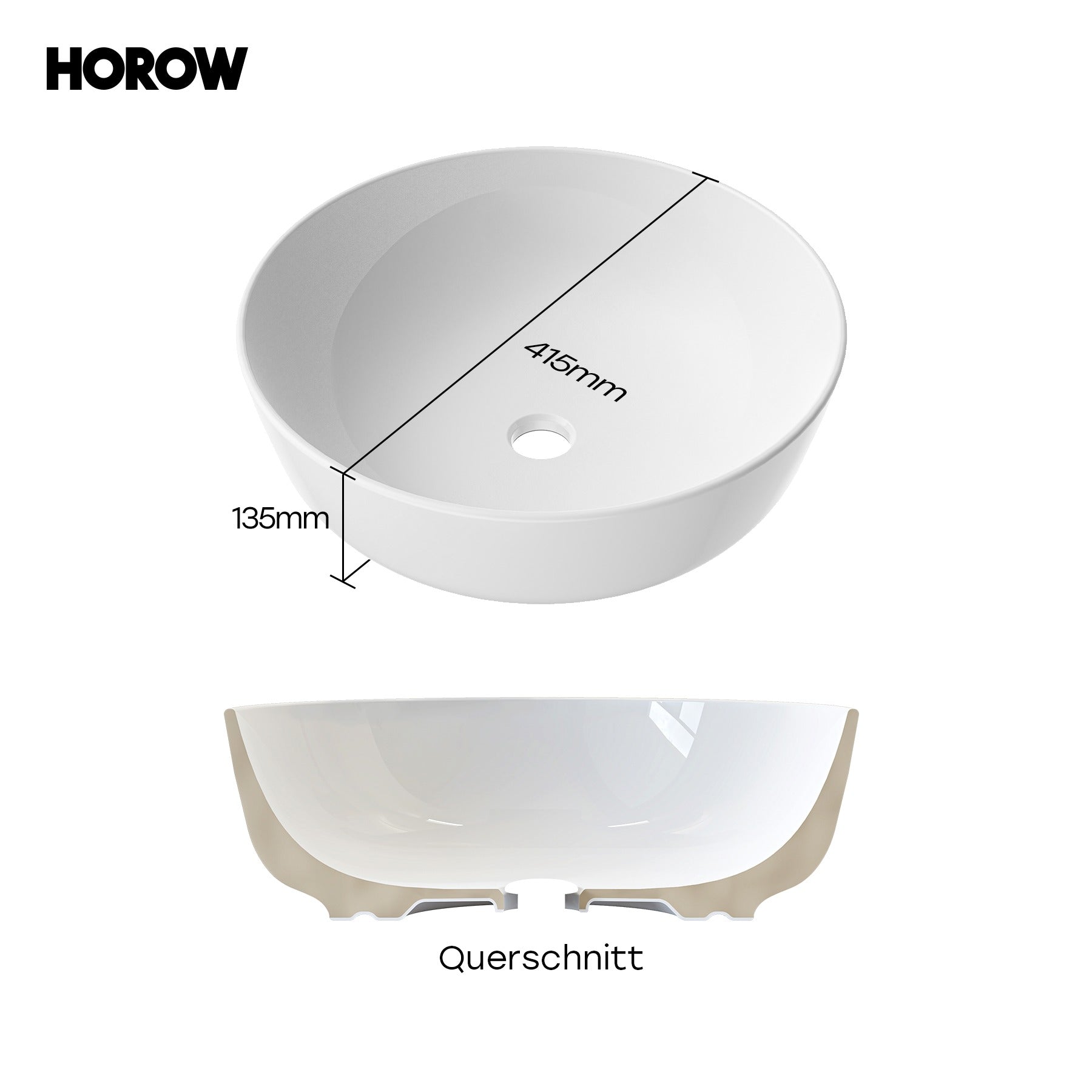 HOROW F11A-S4141 Rundes Aufsatzwaschbecken 40 cm – Weiß, ohne Hahnloch