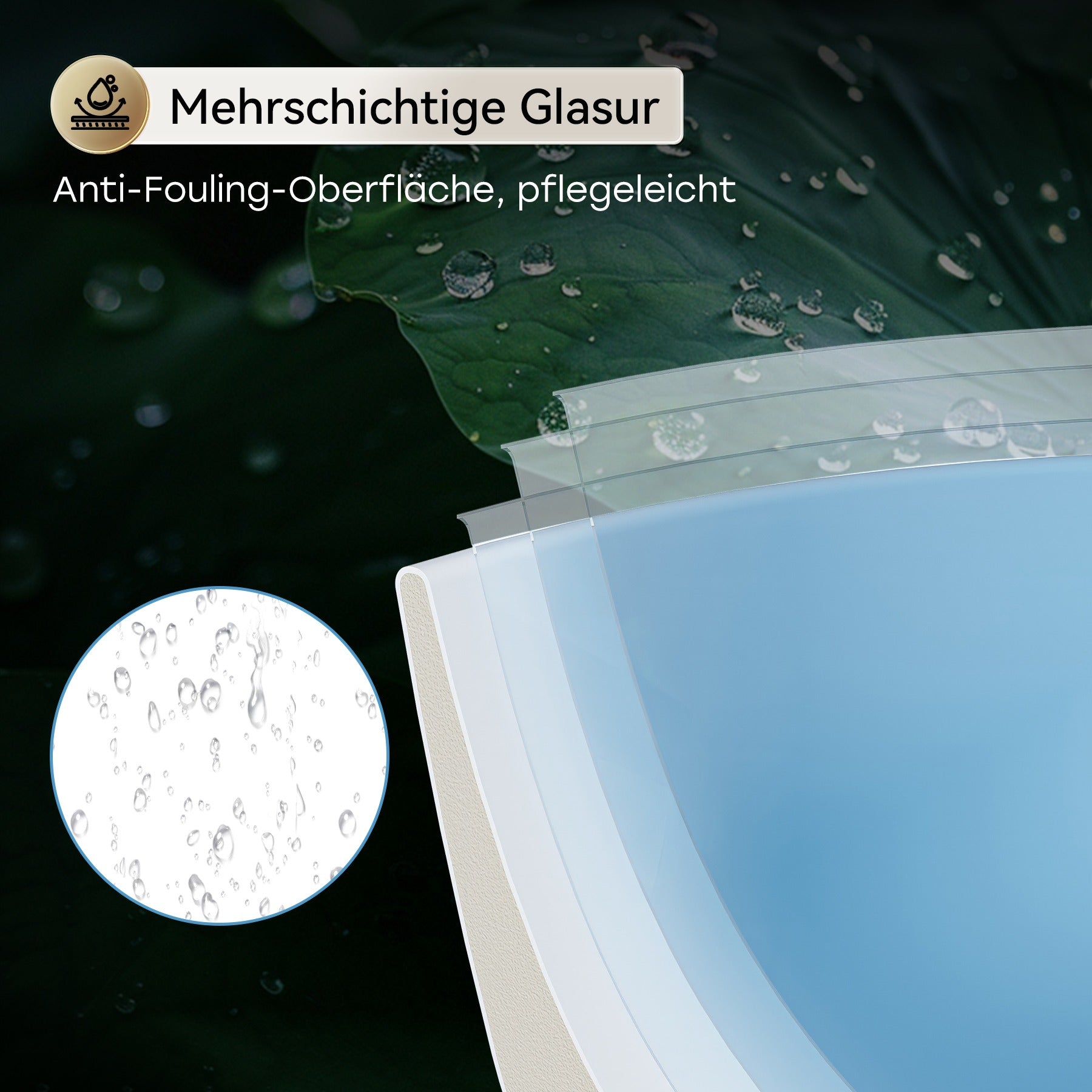 Innovative Nanoversiegelung lässt Wasser und Schmutz abperlen, sorgt für hygienische Sauberkeit und minimalen Pflegeaufwand.
