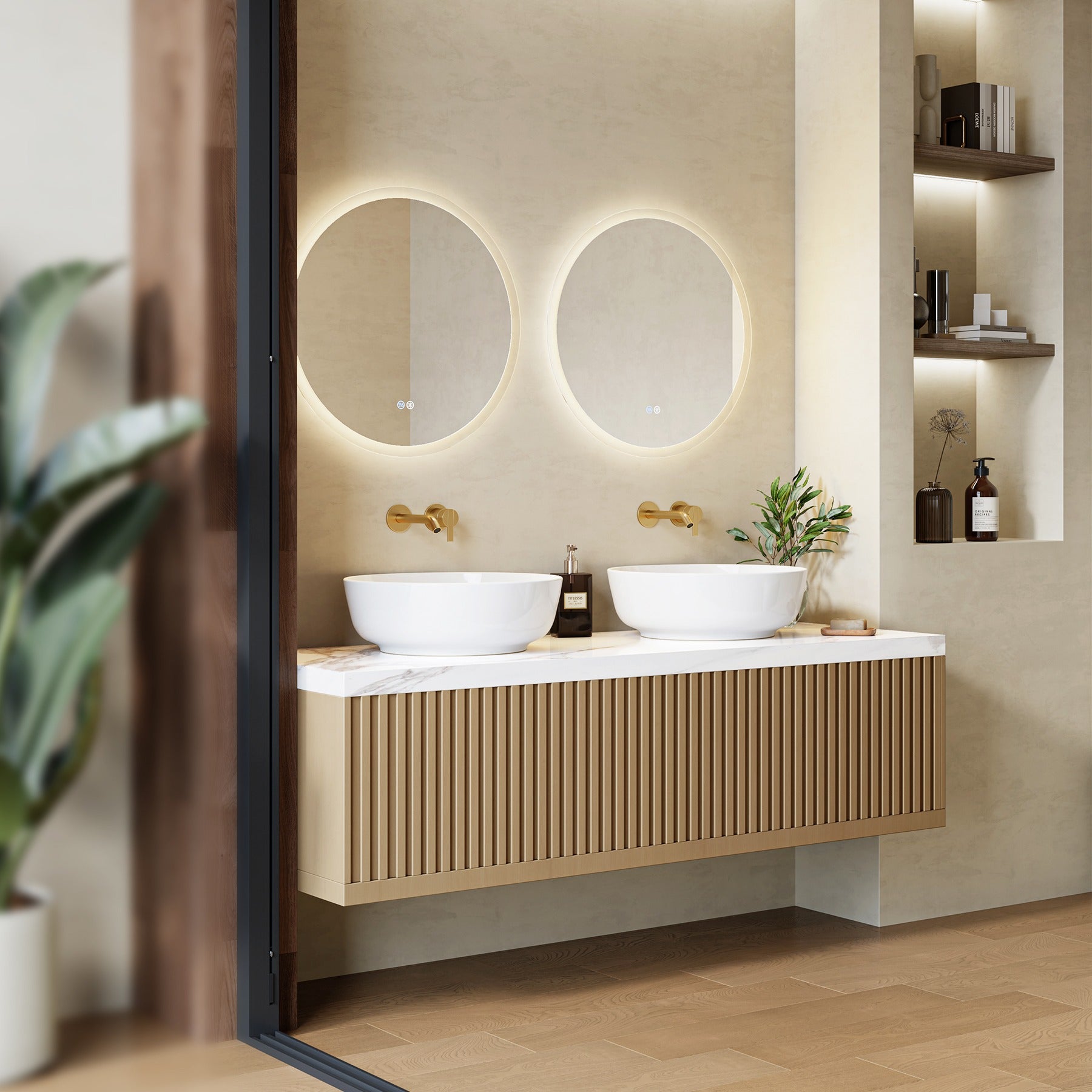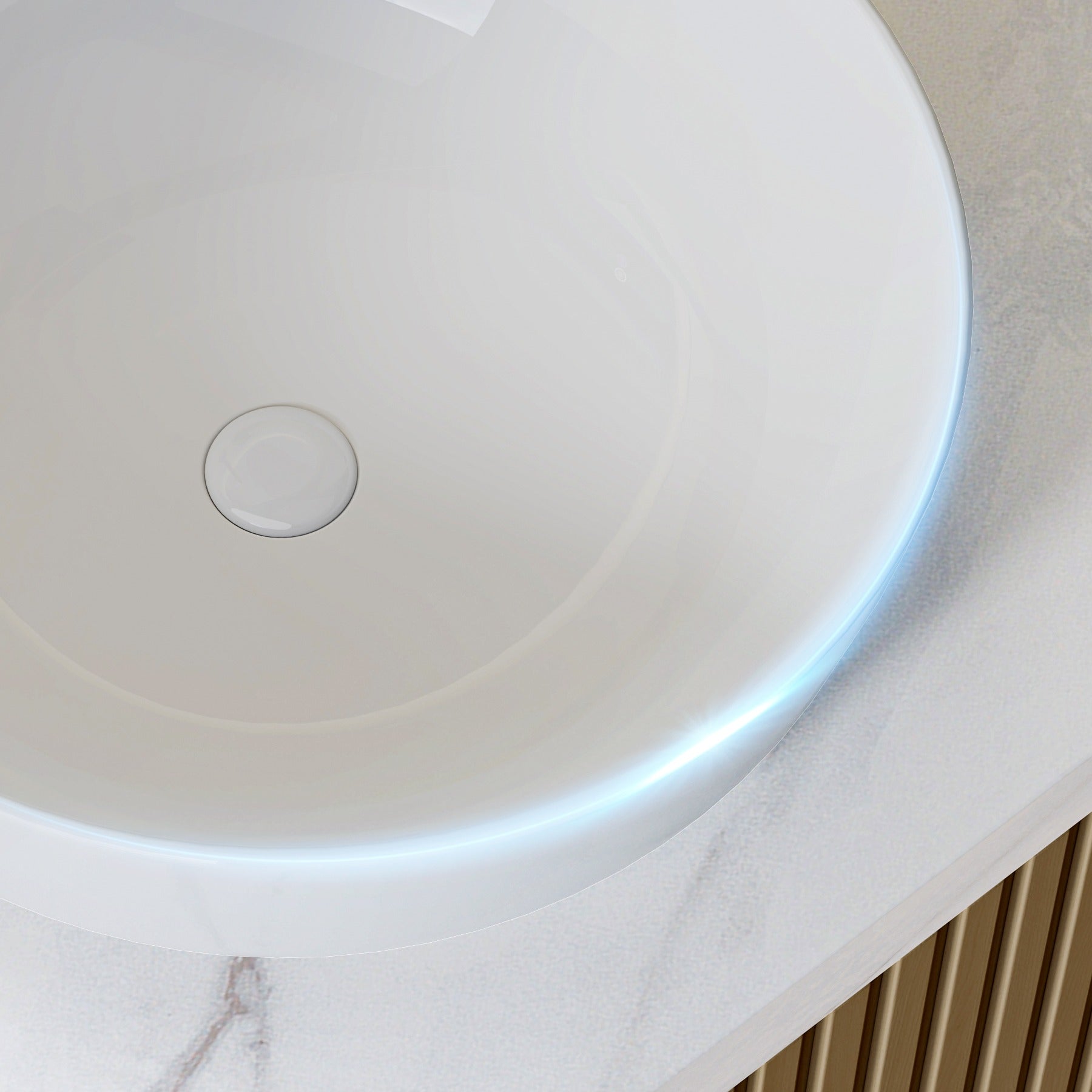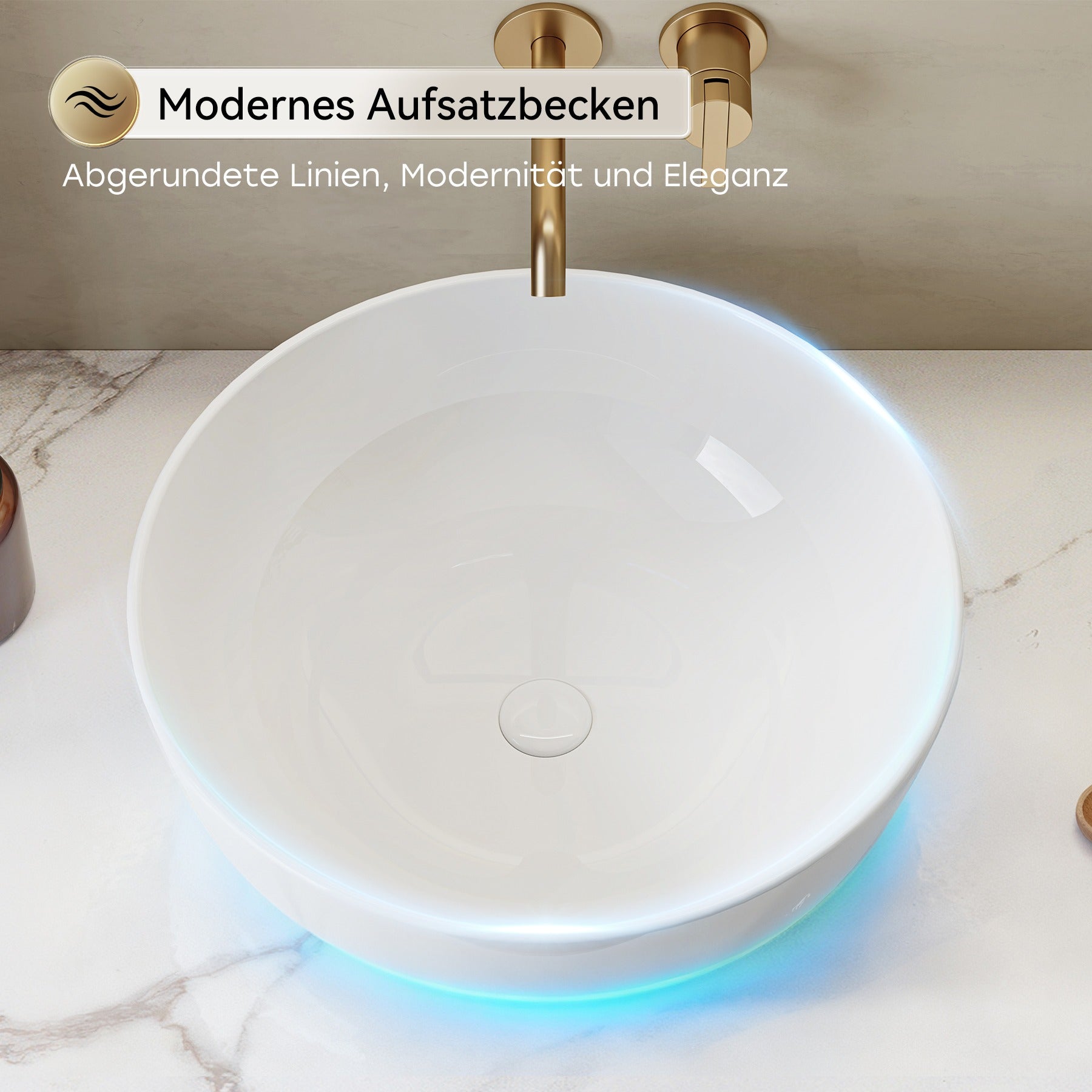 Rundes Aufsatzwaschbecken mit schrägem Rand für optimalen Wasserablauf – modern, elegant und funktional fürs Badezimmer oder Gäste-WC.