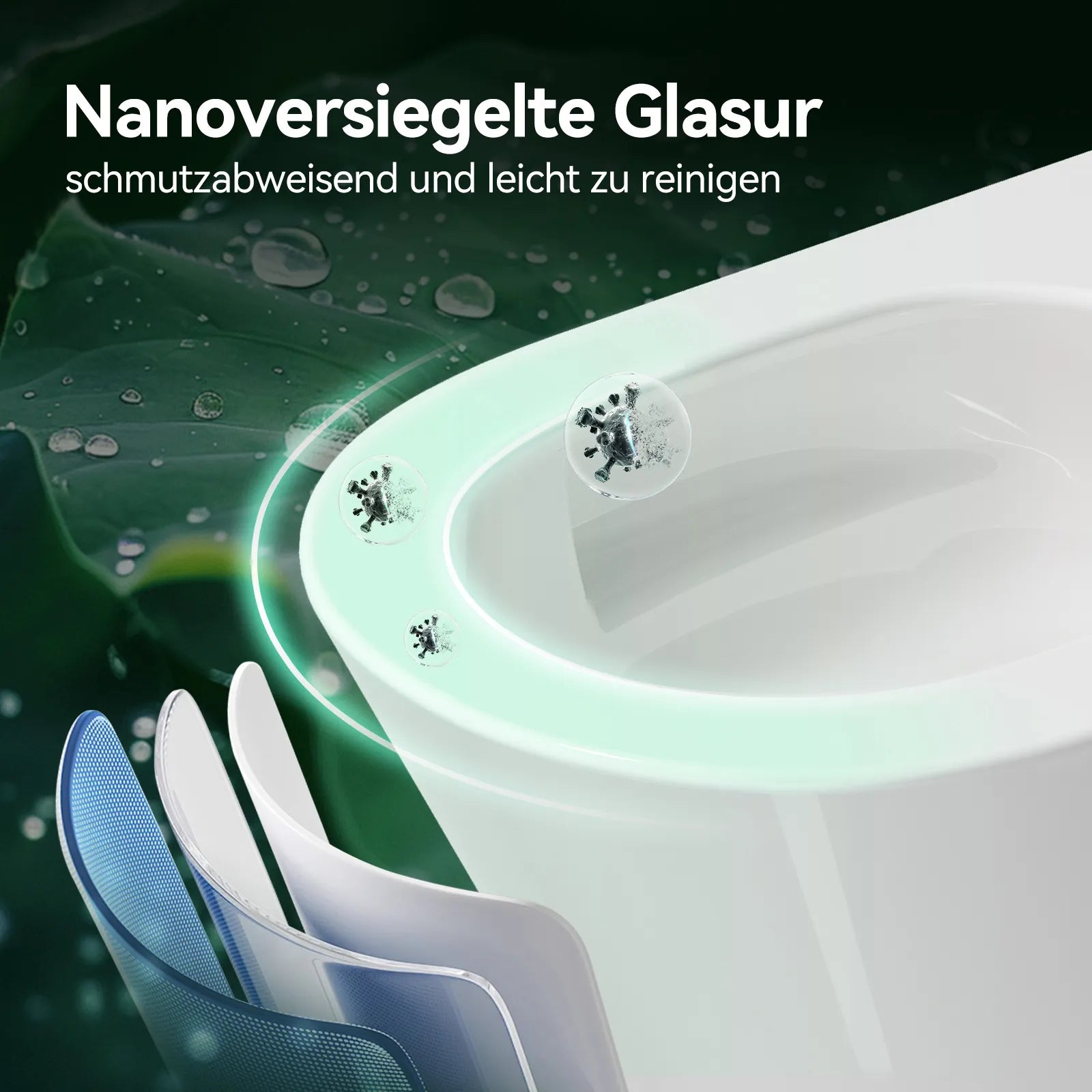- Hochwertige Keramik: Gebrannt bei 1280 °C, glatte Oberfläche mit Nano-Beschichtung. Widerstandsfähig gegen Schmutz und Korrosion, langanhaltend strahlend weiß.